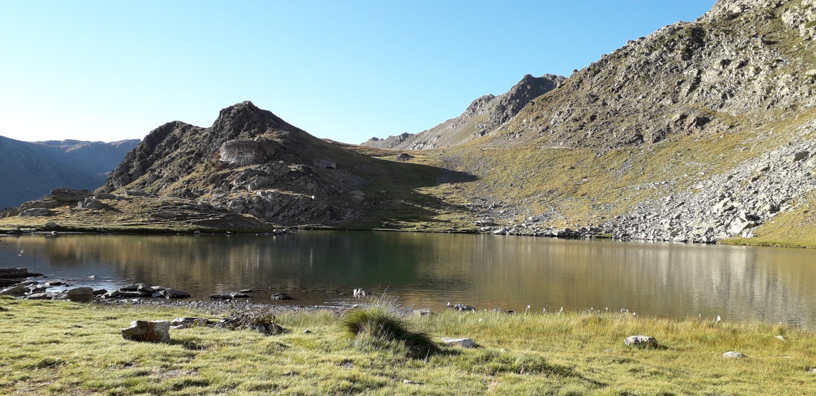 Blockhaus italien de l'autre côté du lac, intégré à la chaîne de défense des installations militaires du col du Lausfer