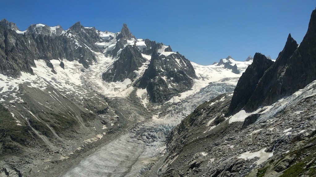 Belle rando en balcon de la mer de glace. Possible à la journée. Compter 3h de montée et 2h30 de descente. Ne pas minimiser le temps dans les échelles et les marches au Montenvers.