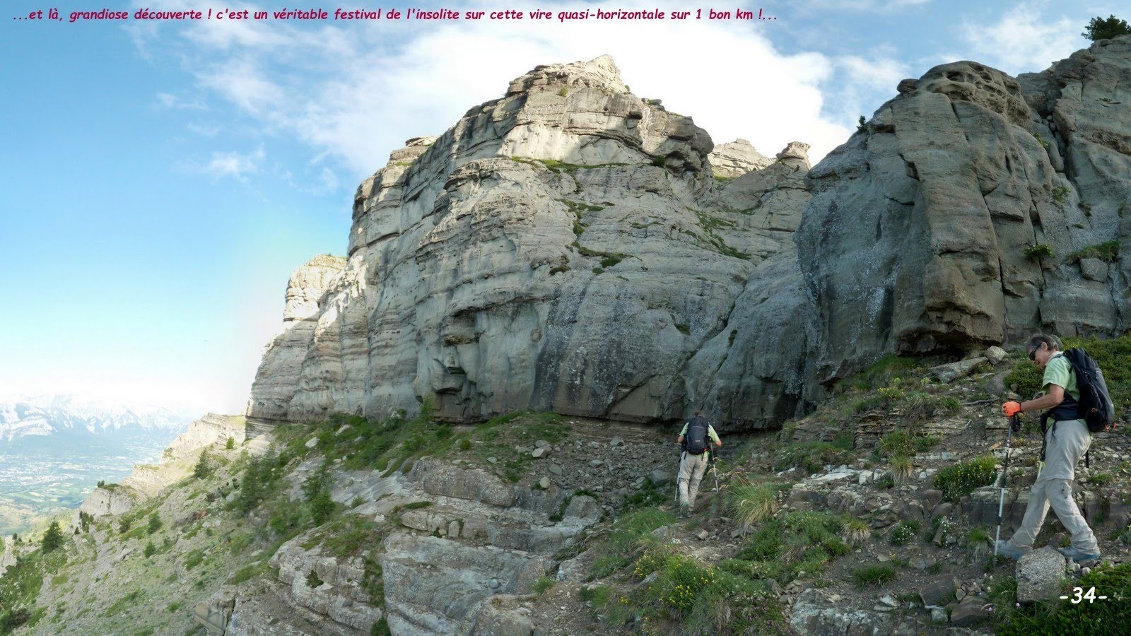 Le Pic Queyrel est connu depuis la nuit des temps par tous les curieux à la recherche des sites naturels les plus insolites. Définitivement popularisé depuis la parution en 2010 du magistral ouvrage : Vertiges d'en haut, courses et randonnées en Dauphiné (pris au sens très large!) de Pascal Sombardier aux éditions Glénat et ses somptueuses photographies ! Malgré tout cette impressionnante forteresse reste réservée aux randonneurs expérimentés sachant progresser avec un minimum de sécurité sur des vires très aériennes sans aucun aménagement spécifique ; même si l'itinéraire emprunté ici évite le passage le plus scabreux d'écrit par Sombardier pour passer du premier au deuxième balcon et en constitue une visite bien plus exhaustive, me semble-t-il ! raison supplémentaire pour ne pas y aller avec vos enfants ou votre grand-mère, même si son auteur pourrait très bien être arrière-grand-père !...