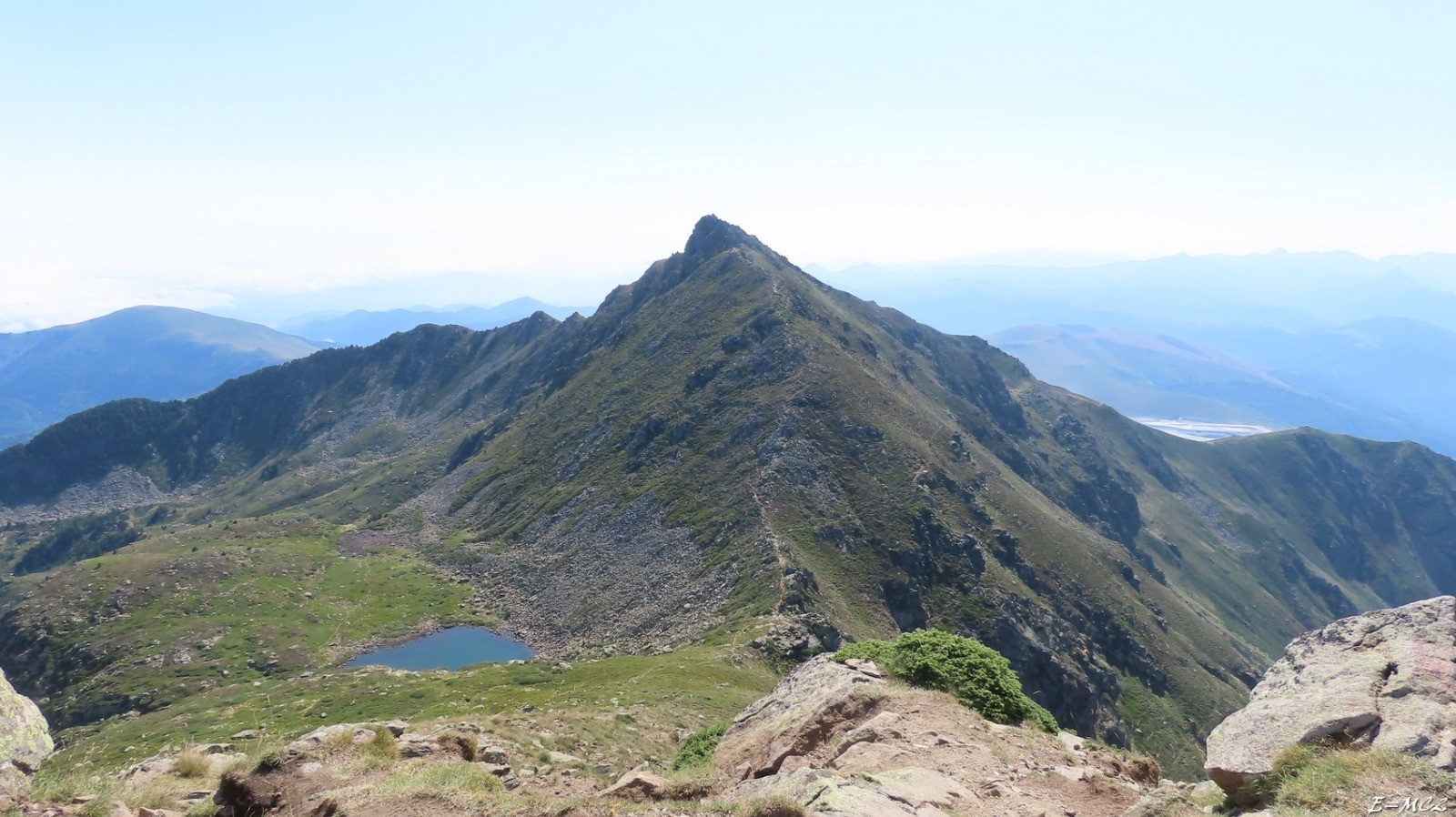 Du Pic de Saint-Barthélemy, descendre à l’est au Col du Trou de l’Ours puis monter en suivant au Pic de Soularac. Pour la descente, poursuivre sur le cheminement balisé. Laissé ensuite la direction de l’Etang Tort sur la gauche. Vers 2070 m d’altitude, dans un col, le sentier se divise en deux, tout il reste sur l’arête, sur la gauche, trace enregistrée il descende sur l’Etang de Béseil. Longer l’étang par la gauche monter une trentaine pour retrouver le sentier de l’arête. Descendre toujours par le cheminement balisé jusqu’à la piste et tourner à gauche pour revenir au point de départ.