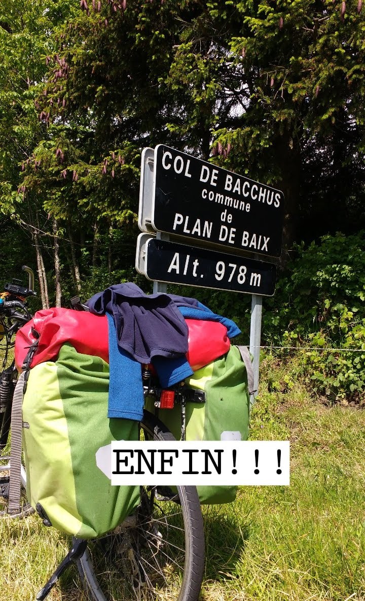 Retour sur Crolles depuis Manas chez Brigitte après trois jours en Ardèche. Dure, dur la montée au col de Bacchus surtout avec le vent de face. Arrivée à Léoncel sous un ciel menaçant. Je reste au gîte, repas préparé par l'auberge qui n'a pas encore réouvert complètement. le lendemain, réparation d'un pneu crevé la veille 3km avant l'arrivée qui avait tenu en regonflant puis départ sous la pluie. La descente est glaçante mais cela va mieux une fois arrivé sur le plat. Moins de pluie l'après-midi, arrivée pas trop tardive après 113 km dans la journée