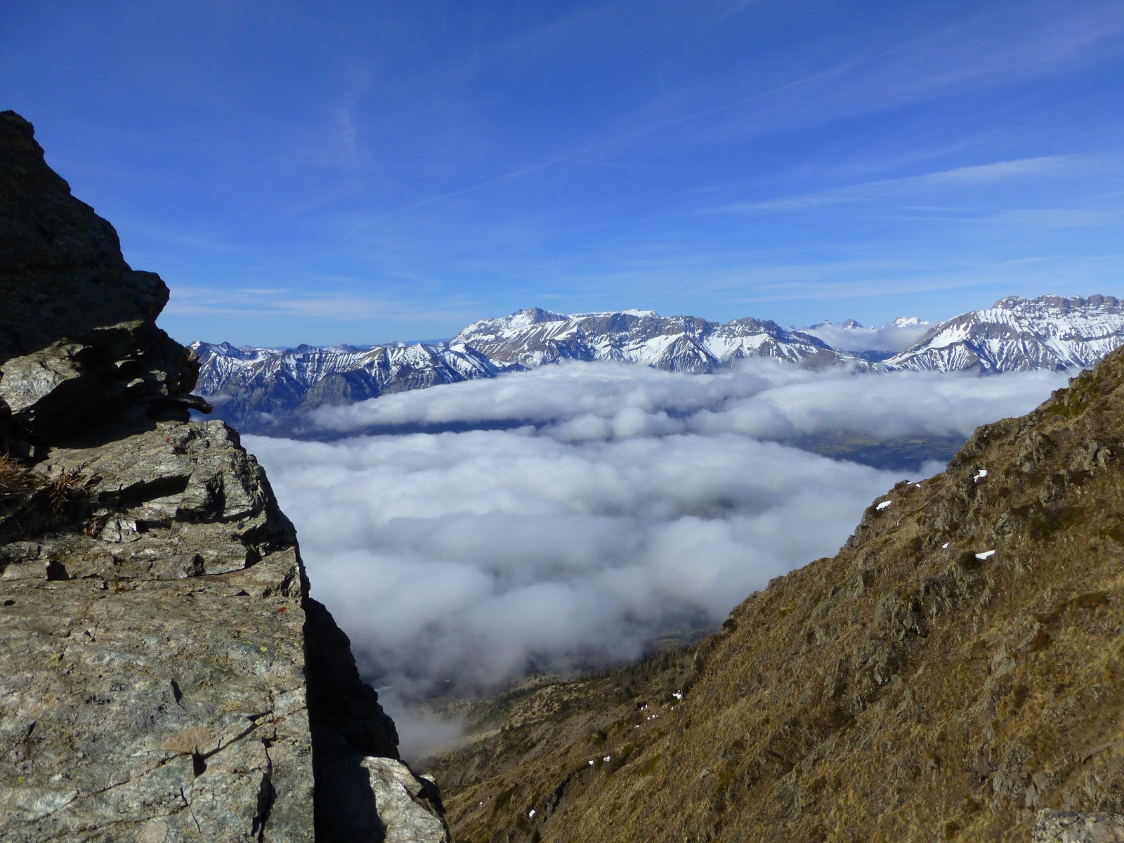 Au col, la vue panoramique sur le massif des Ecrins est fantastique.
