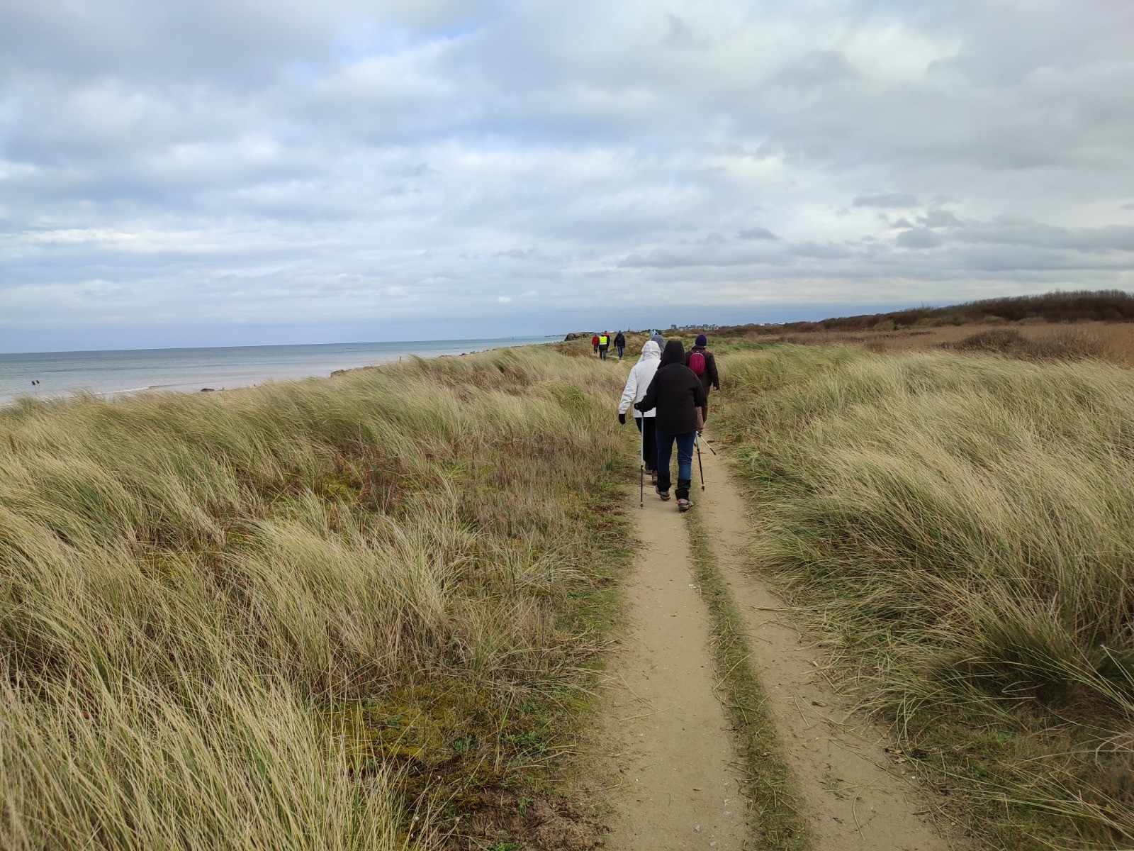 Randonnée pédestre de 8 km 5 au départ du parking situé en face du char de Graye sur Mer. Le circuit longe la côte entre Ver sur Mer et Courseulles sur Mer sur 3 km et la vélo-maritime.