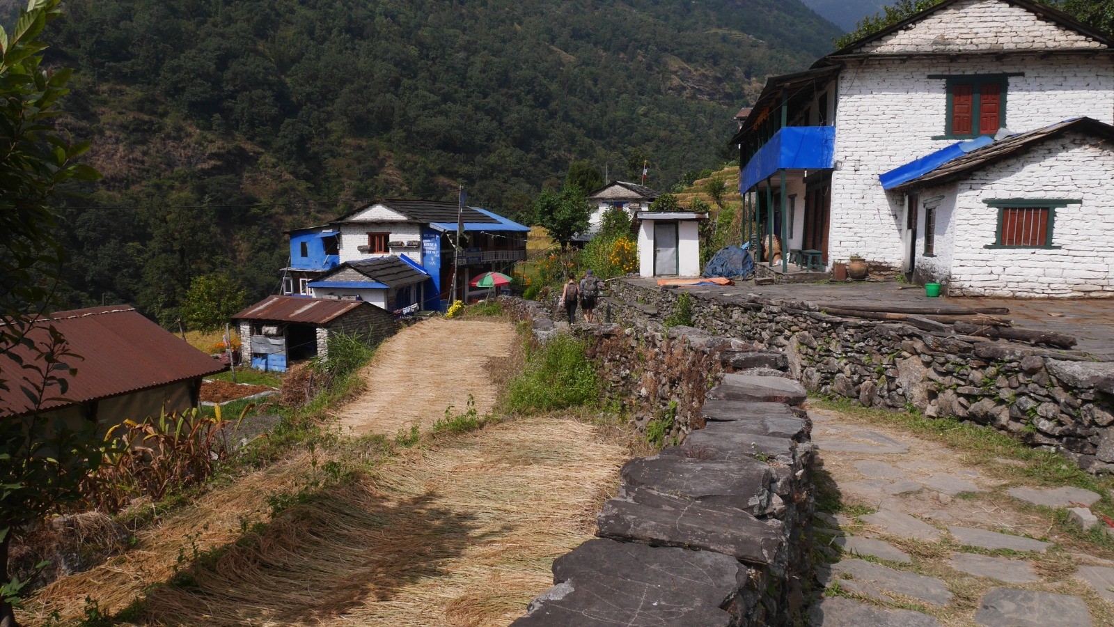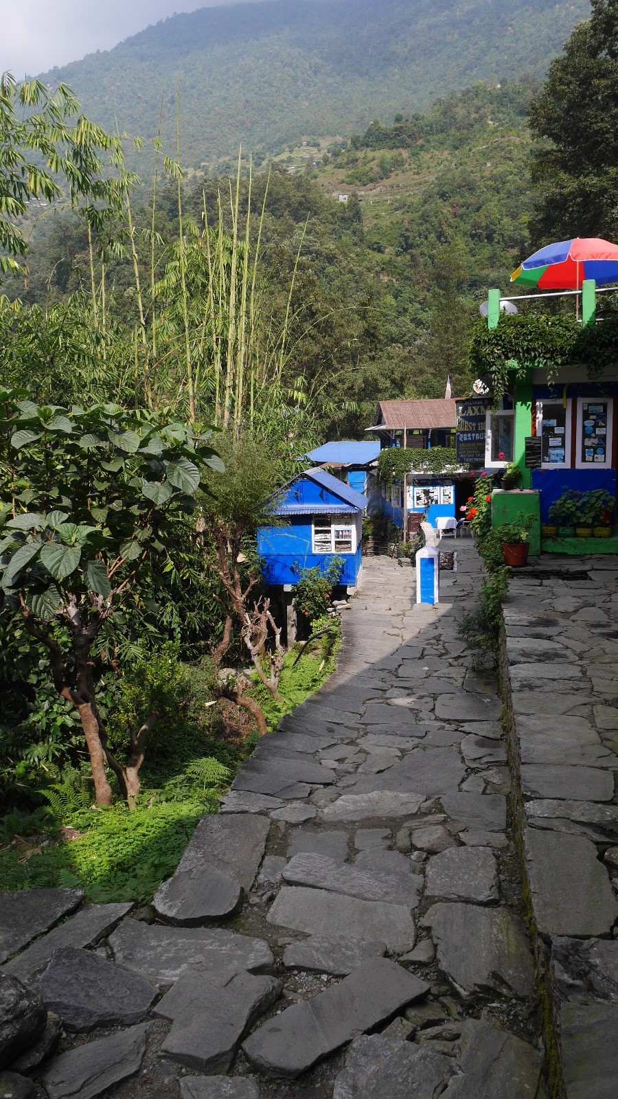 Jour 1 : Taxi (réservé par le boss de l'hotel de Pokara) jusqu'au départ de Naya Pul. 800 Roupies pour moi. J'ai laissé Nicole et Véro en route, elles font un autre trek. Au bout de 30 mn 1er check point pour vérifier les permis. Il faut repayer qq chose, je m'esquive, ayant déjà payé un permis et un TIMS pour seulement 4 jours. 10 mn plus tard un autre poste qui tamponne mon permis. Après 2hr je rejoins Hile en croisant plusieurs villages très jolis, très différents que dans le tour du Manaslu.Trés bon Dal Bhat puis je rejoint Uleri aprés avoir gravi 3280 il parait. Logé au Hill Top, pas cher du tout. Peu de monde, juste une Italienne avec guide et porteur.