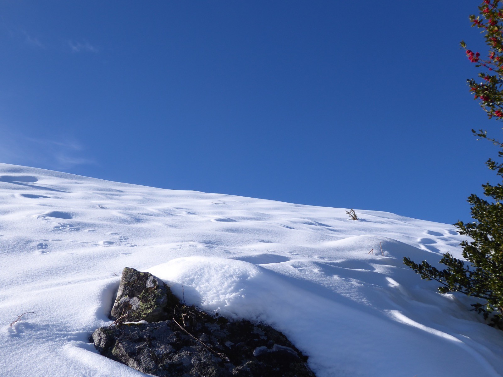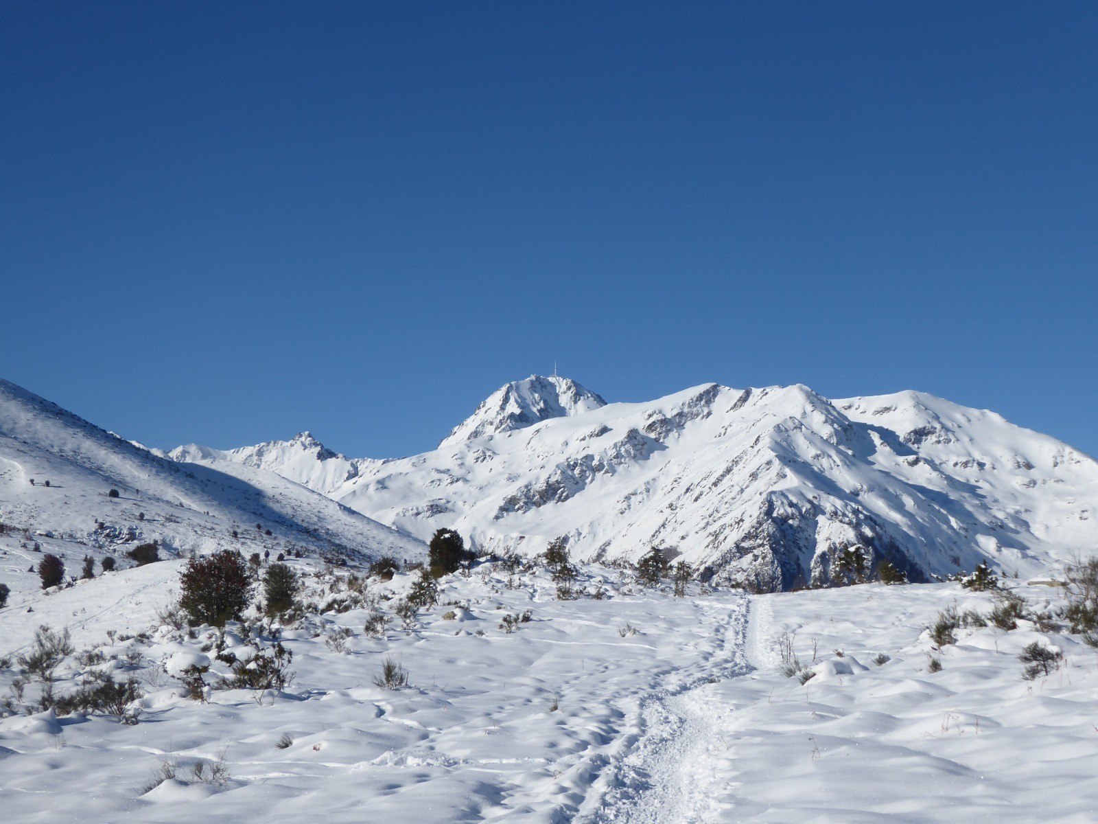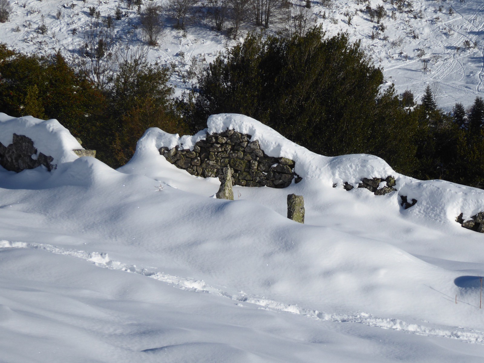 La qualité de la neige est là ! Les sommets environnants sont moins chargés car ventés. Une boucle agréable surtout dans la forêt où la neige était on ne peut plus confortable . Et toujours sous la bienveillance du Monfaucon et de l'Arbizon.