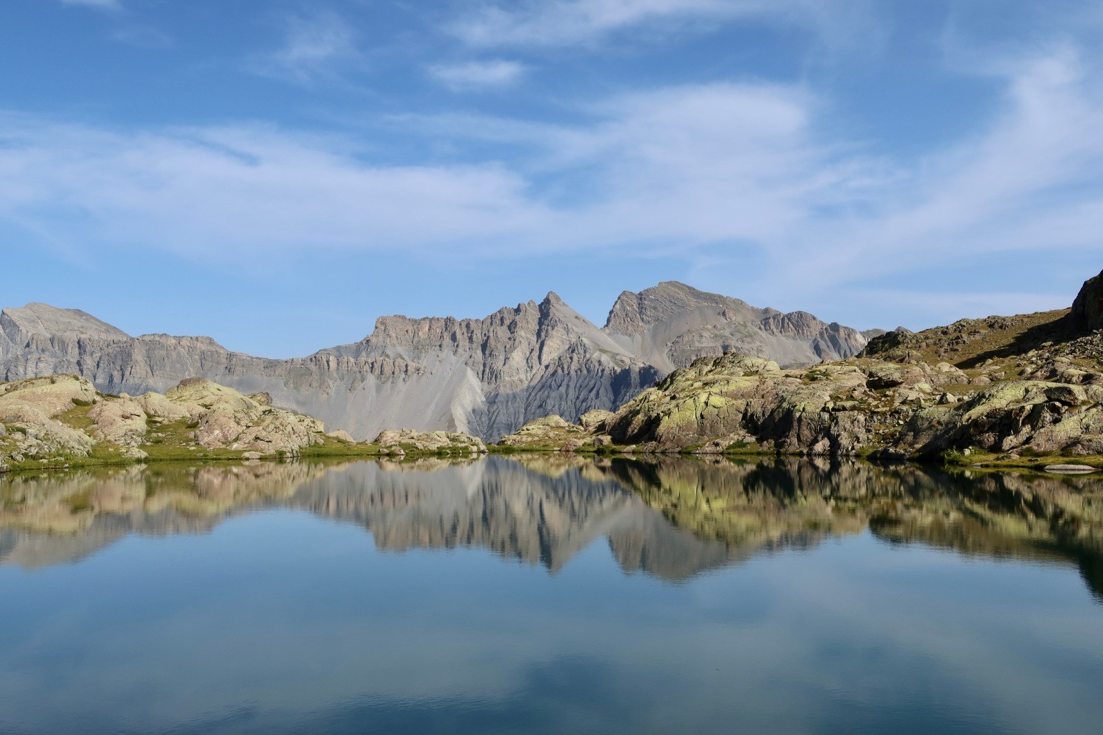 Le départ se fait sur le parking des Camps des Fourches sur le col de la Bonette à la balise 41a sur le GR5 pour rejoindre le col des Fourches à la balise 41, puis la balise 37, il faut quitter le GR5 pour prendre le sentier dit du Pas de Morgon, dans le vallon de la Cabane, prendre en face la gauche du goulet pour arriver au 1er lac de Morgon, cheminer le long des lacs, laisser le sentier qui mène au pas de Morgon pour arriver dans le vallon de Gorgeon Long et attaquer la montée sur le Mt Aiga, attention à partir de la côte 2700 jusqu'à la crête vers 2800m grosse montée assez difficile, on peut l'éviter en prenant sur la droite le pas de Gorgeon Long. Avant le pas de Gorge Grosse prendre à gauche et descendre dans la Combe du même nom, en hors sentier, pour rejoindre celui qui mène au col de Pouriac puis le GR5, et attaquer la dernière montée pour rejoindre le Col et le Camp des Fourches.