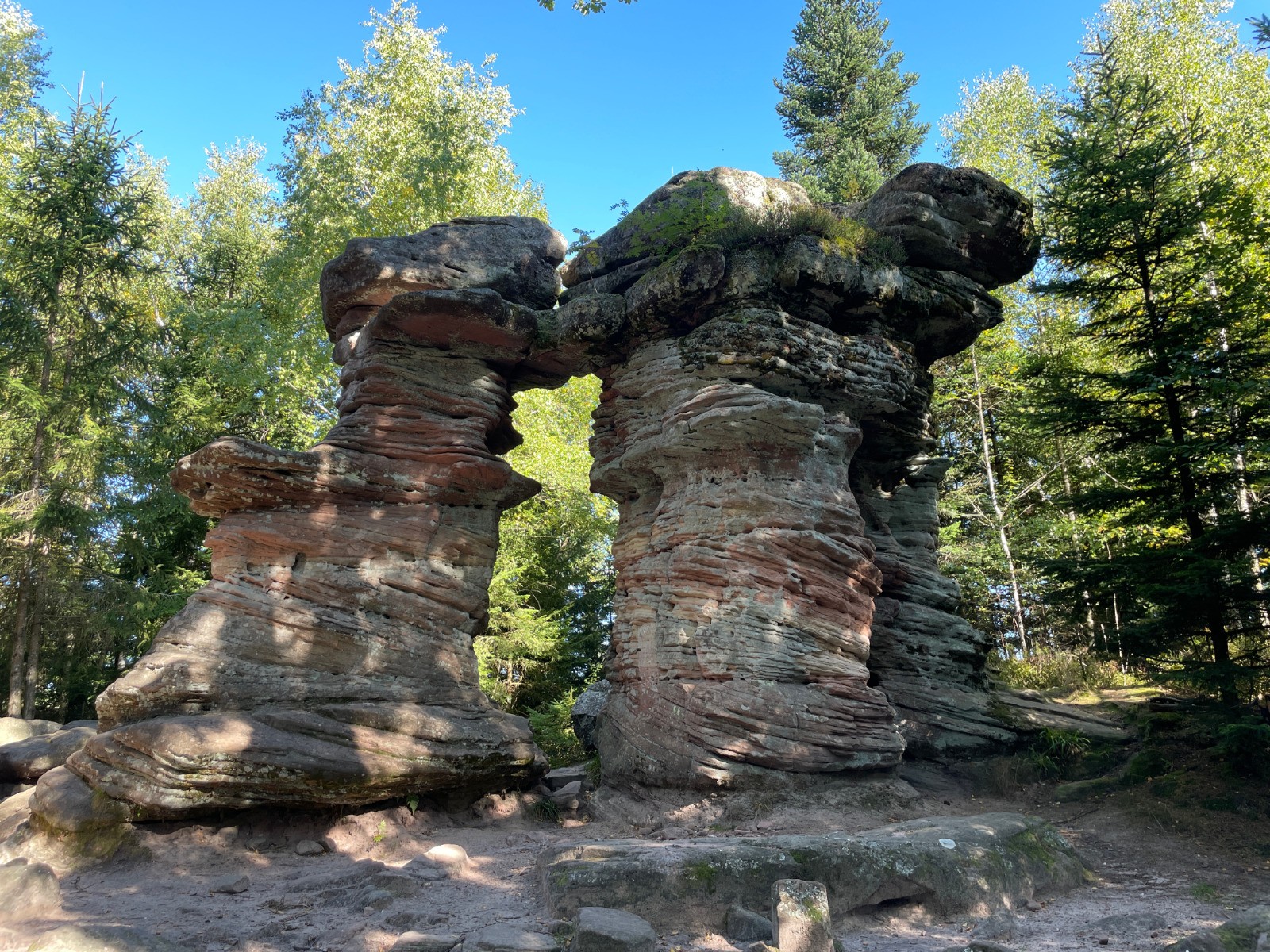 Boucle au départ du parking de l'ancienne maison forestière de Sperl à Lutzelhouse. Des sentiers où s'exposent des sculptures monumentales et menant aux lieux emblématiques du secteur : la porte de pierre, le petit Katzenberg, le rocher de Mutzig pour finir par le jardin des fées.