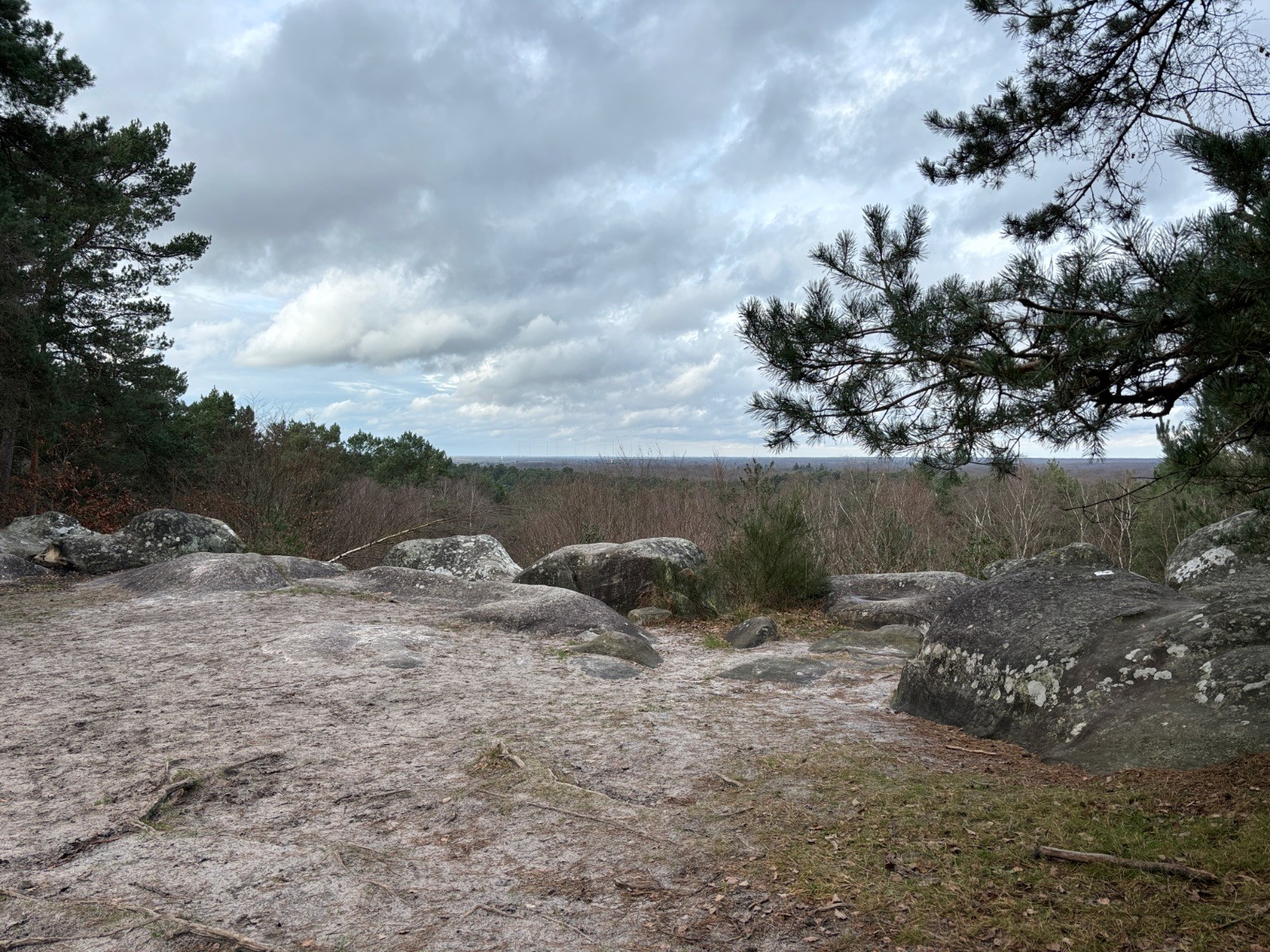 Balade avec Gaby dans les gorges de Barbizon en suivant le balisage bleu, au passage de nombreux rochers remarquables et des arbres