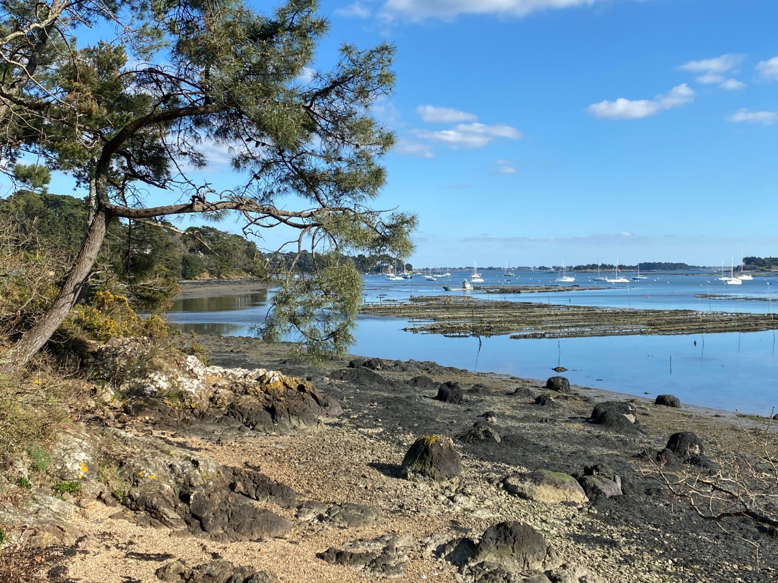 Ce parcours, du Moulin du Paluden au Moulin de Pomper, offre une boucle le long d'une côte découpée, animée par les installations ostréicoles et les mouillages de bateaux. à Arradon