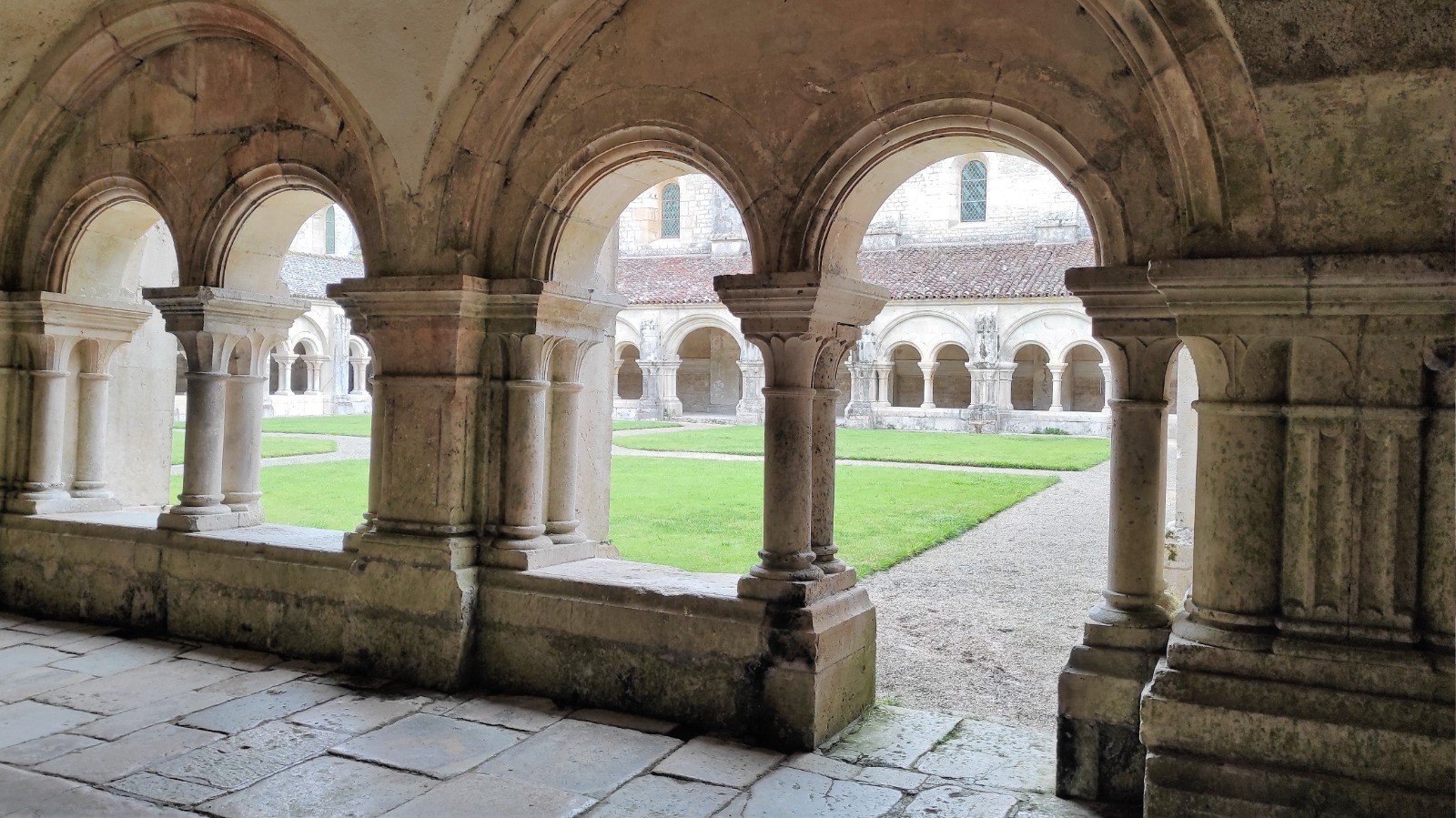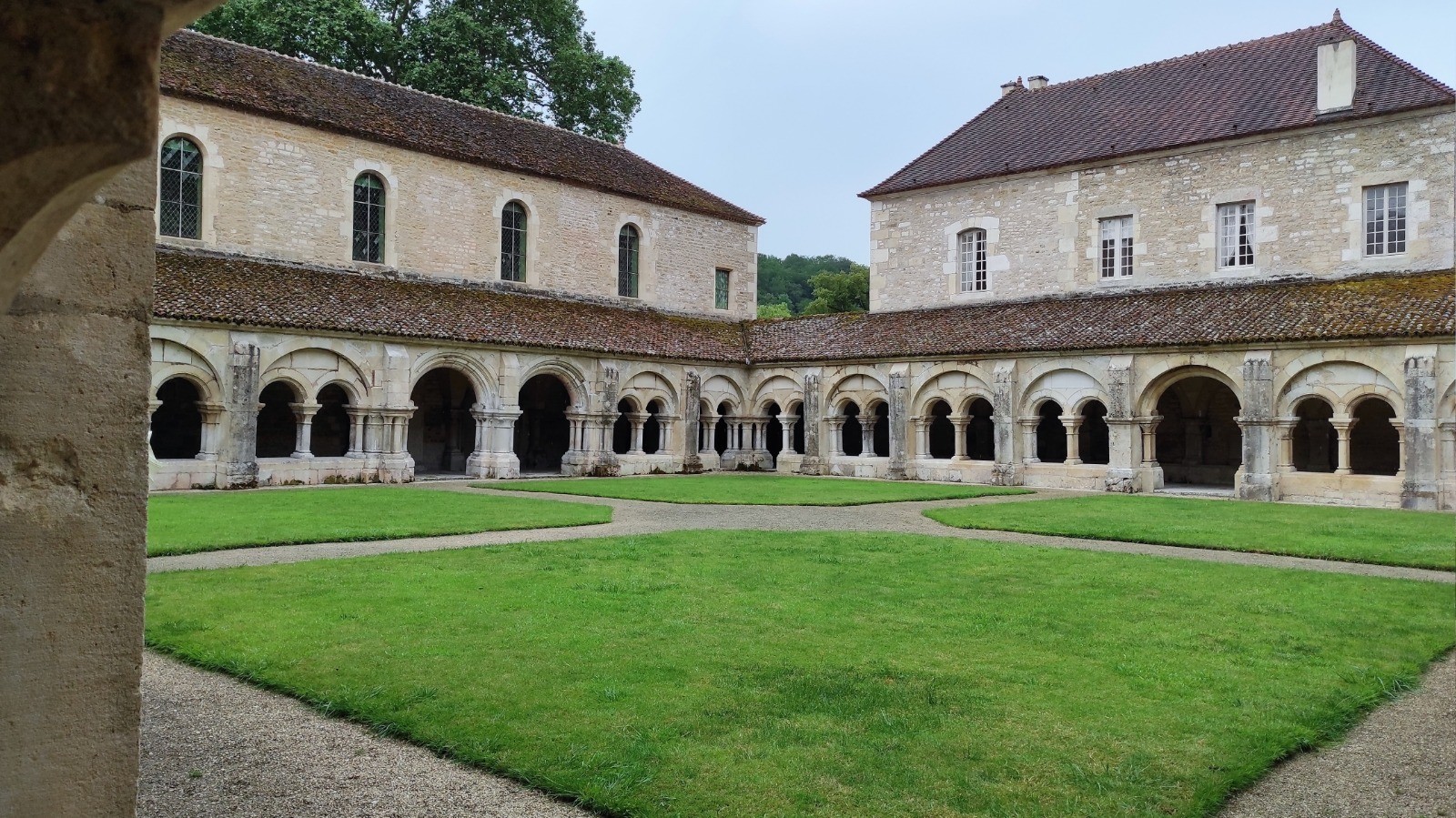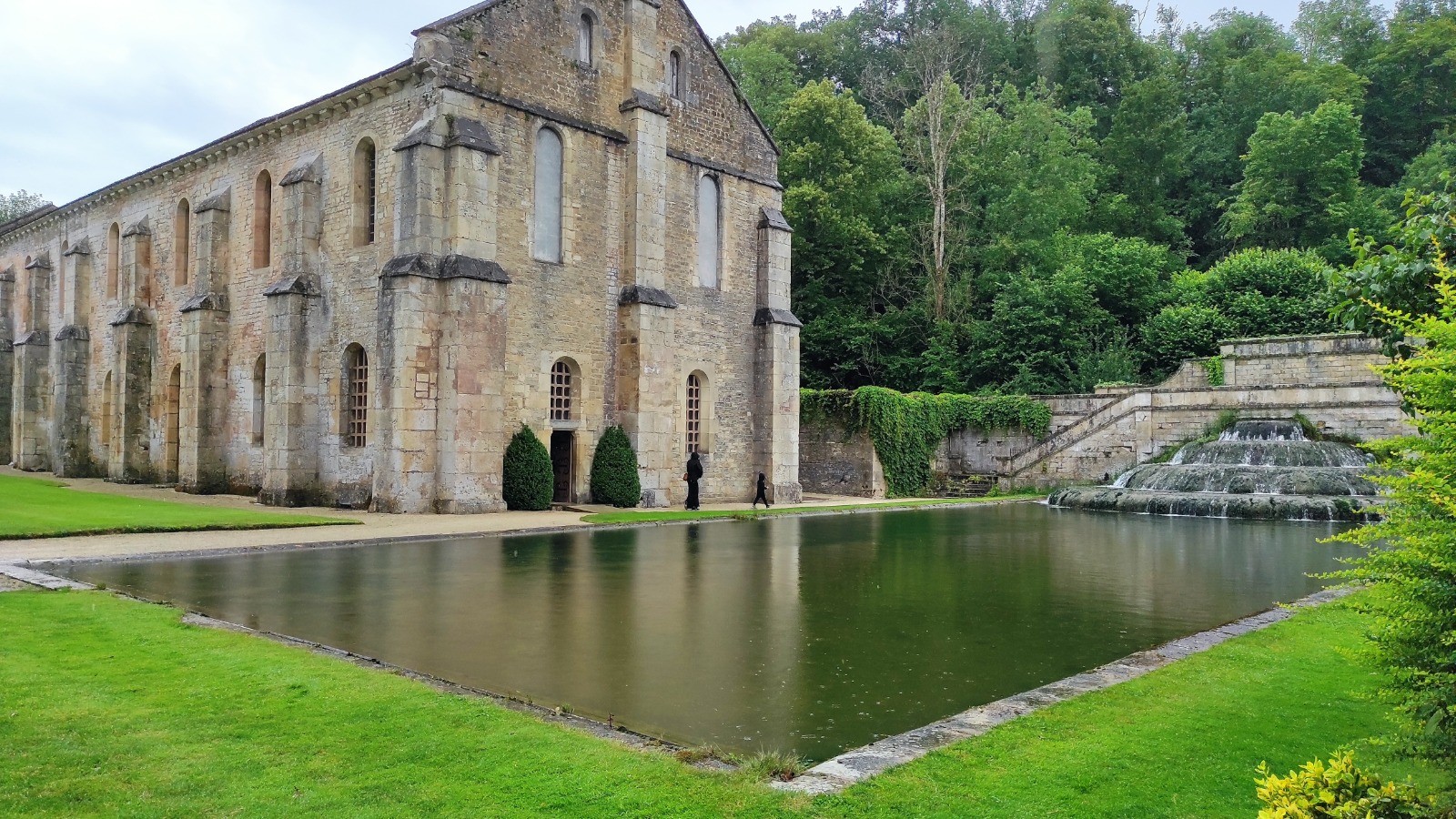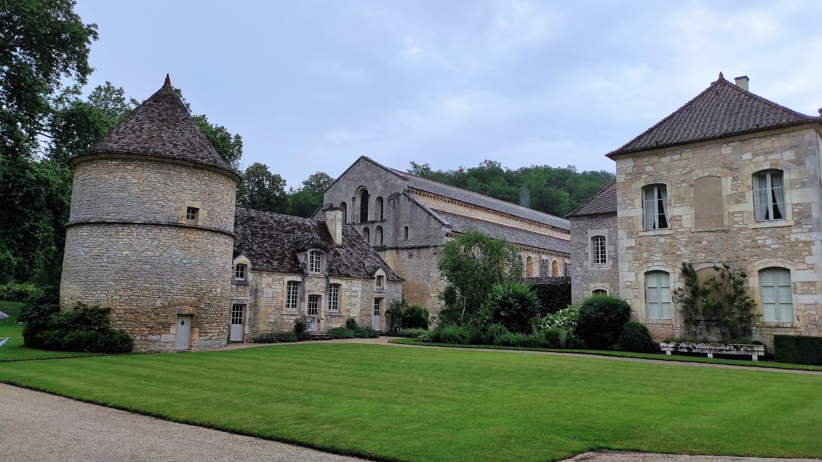 Encore 60 km aujourd'hui, dont une partie sous la pluie, enfin surtout pour la visite de l'abbaye de Fontenay.