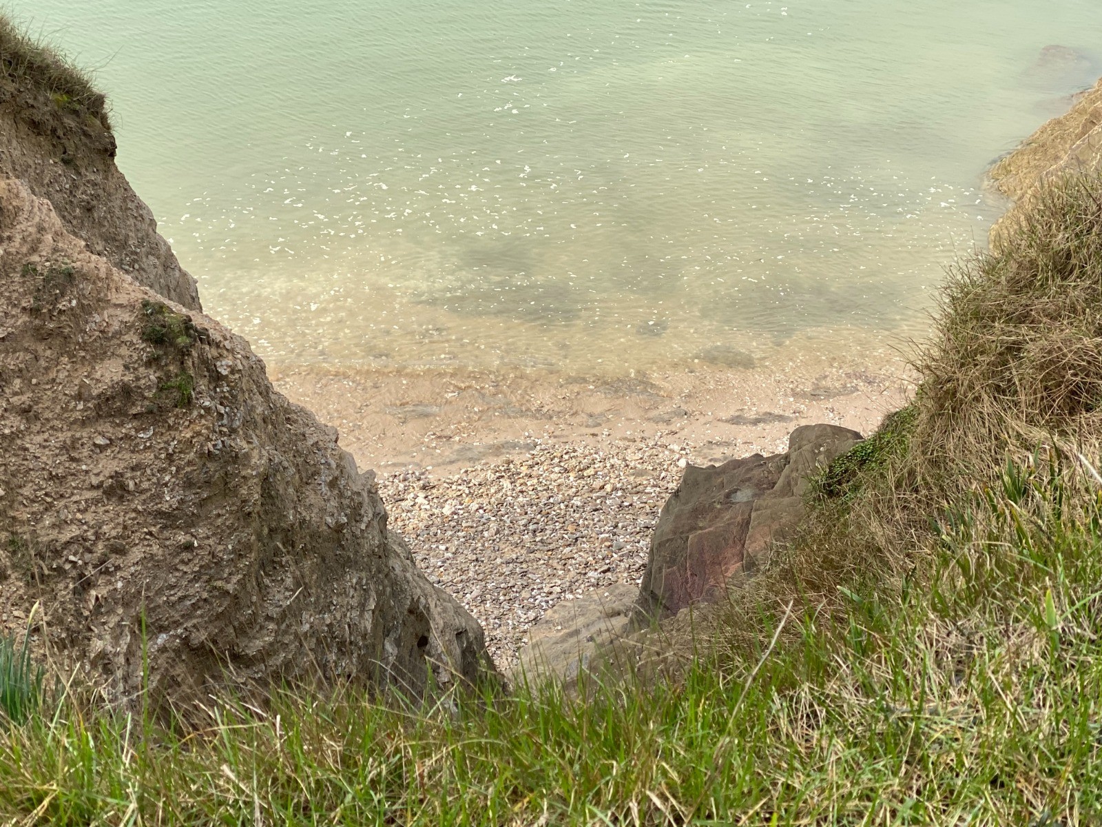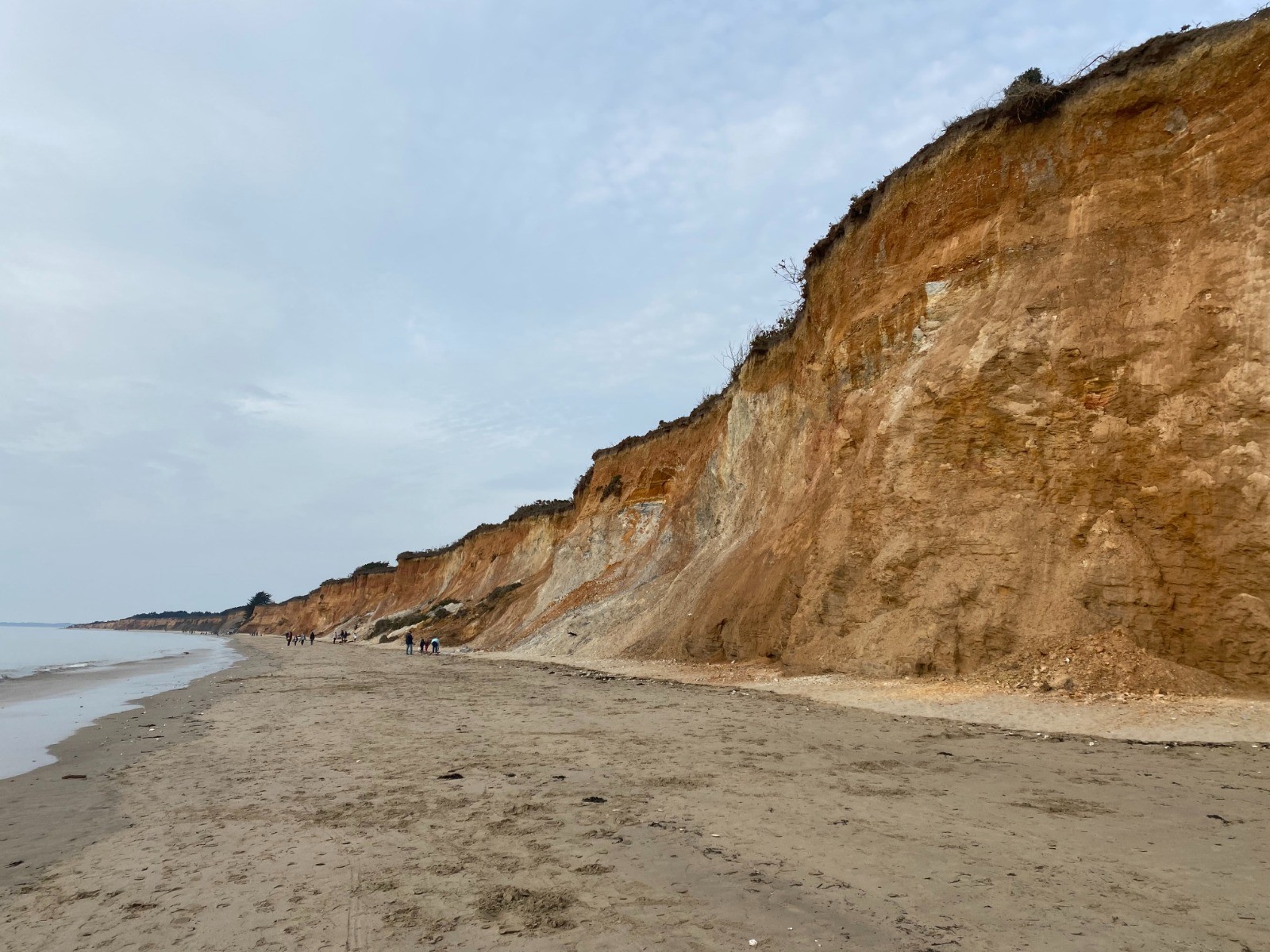 Une haute falaise aux dégradés ocres dominant la mer…