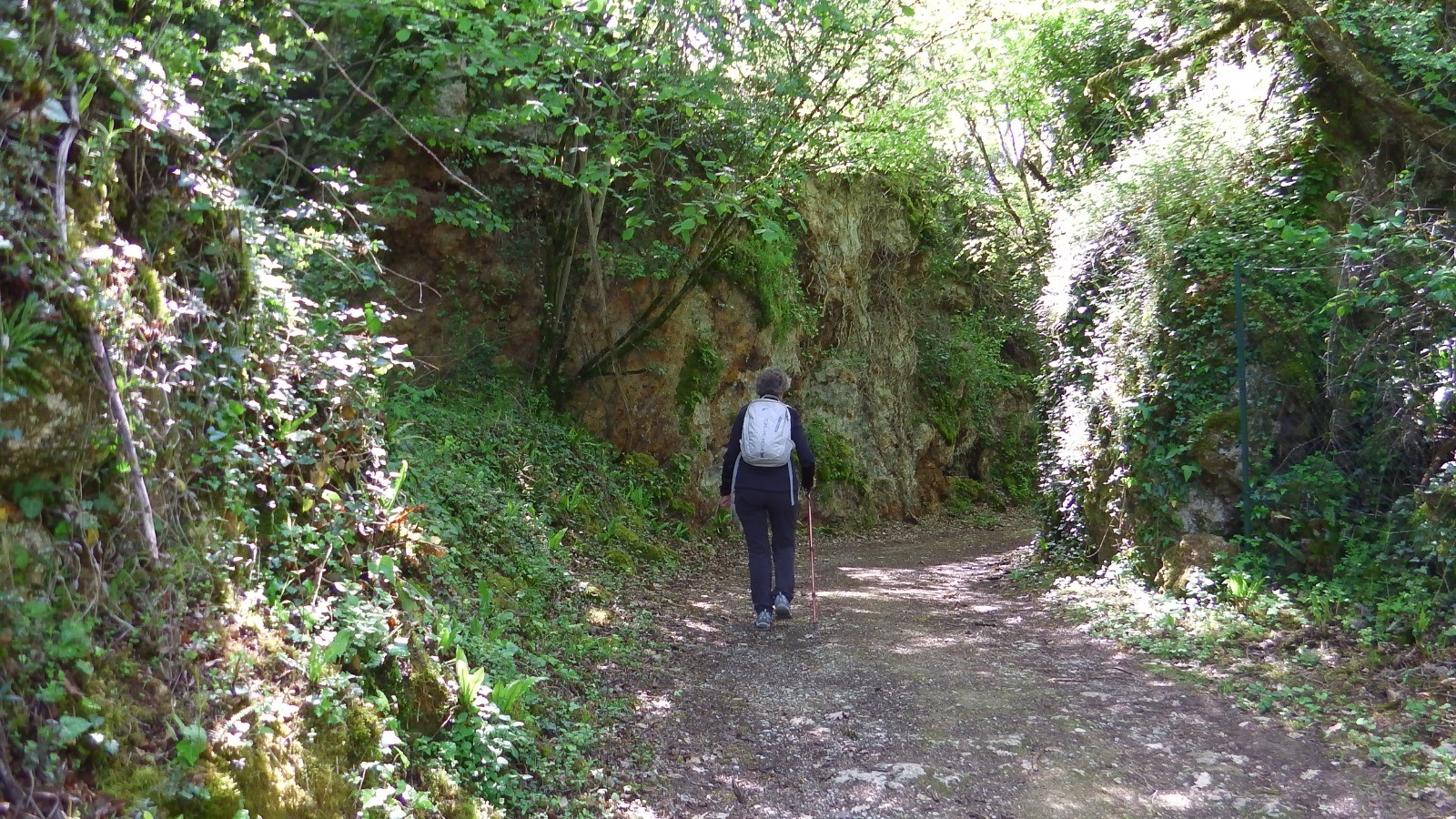Pas de balisage spécifique - ne pas emprunter le 1er chemin à gauche avec des panneaux mais continuer sur la route jusqu'à La Roche