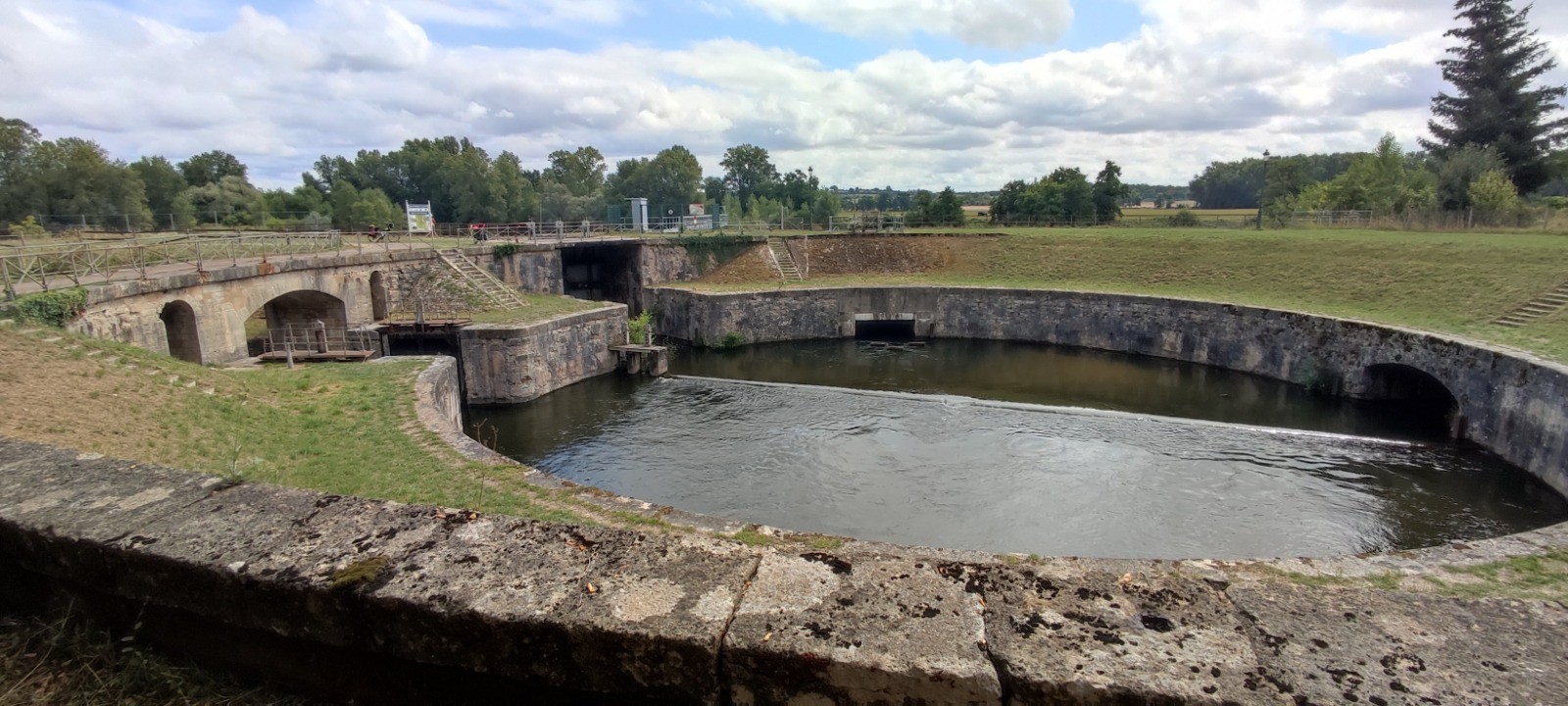 On commence par suivre l'EV6 jusqu'au bec de l'Allier après avoir passé, le pont canal de Guerrin. On l'a quitté alors, on passe à l'écluse des Lorrains que je connais bien, puis le village musée d'Appremont sur Allier. Après c'est la campagne avec les troupeaux et de toutes petites routes. Pas croisé plus de 5 voitures en 45km.