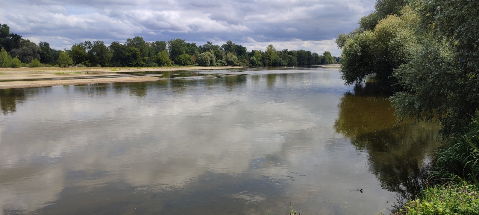 La nuit sera épique. Pluie et grêle, prevu. Avant il faît une chaleur éprouvante et l nous sommes piqués par des bestioles. Pas de grêle finalement, mais de la pluie en début de nuit et tôt le matin. Je vais acheter le pain sous la pluie. Nevers désert. Pluie et orages annoncée toute la journée, il n'en sera rien, nous finirons sous le soleil l'étape.