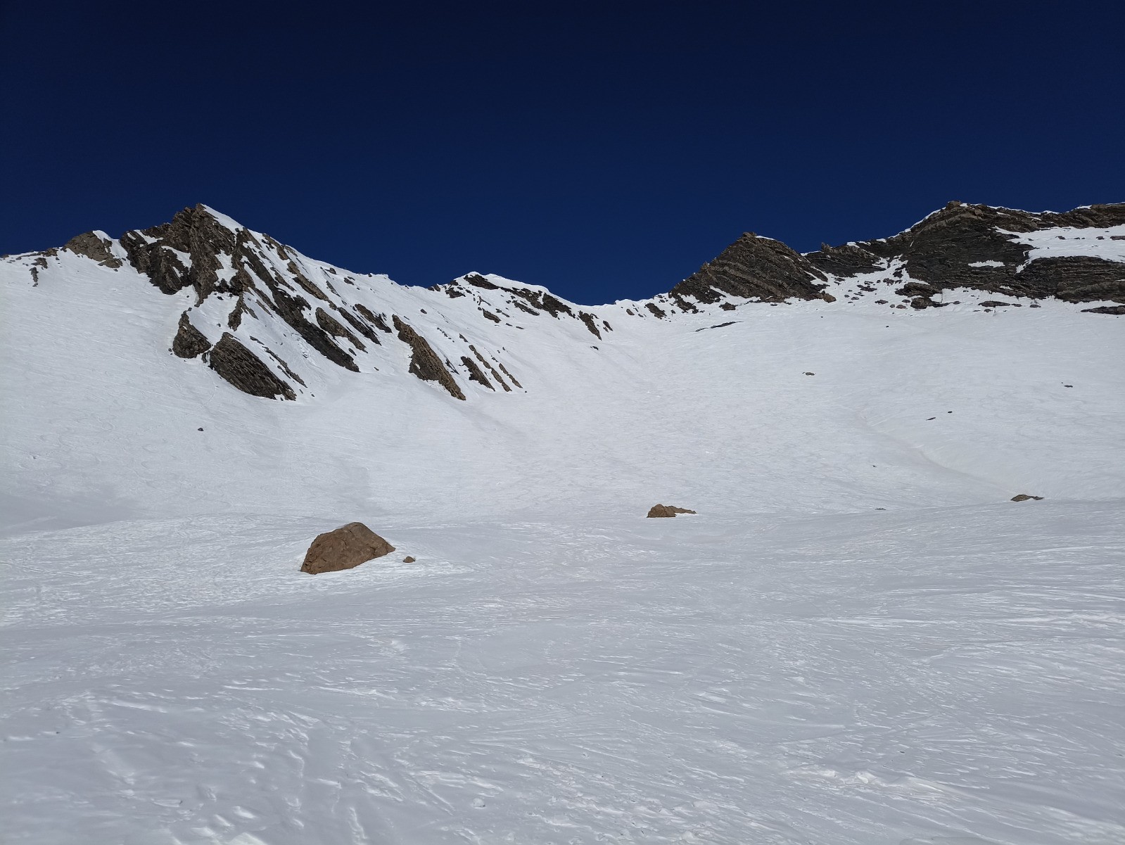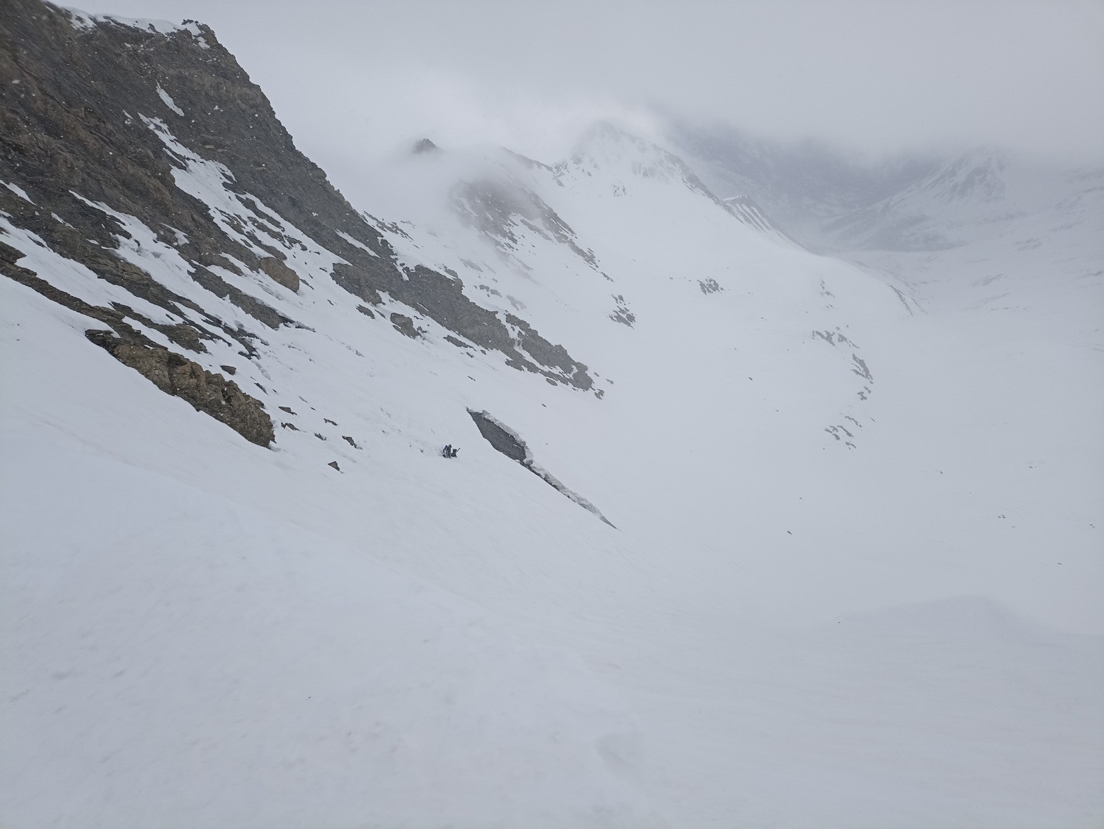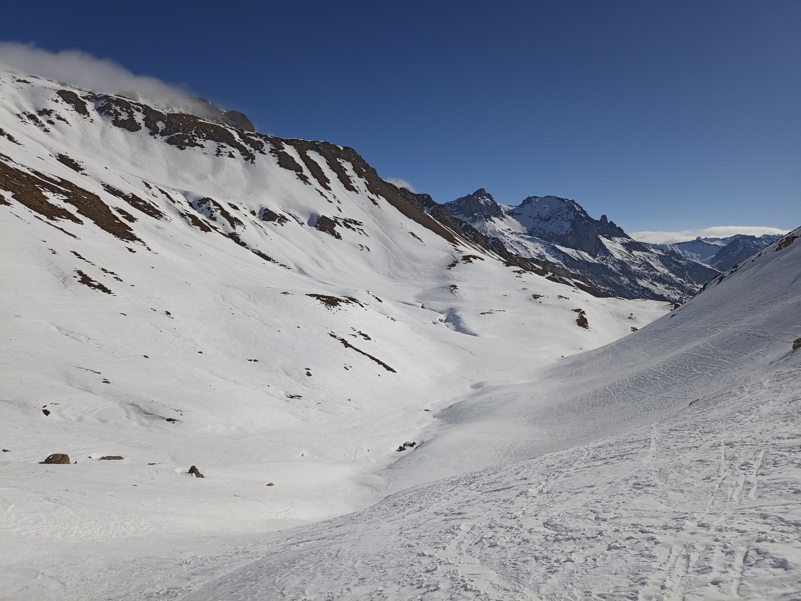 L'accès au col ce fait pour ma part en crampons alpi. La neige est béton. La descente de la parties la plus exposée ce ferra en crampons aussi. Jour blanc pour toute la descente. Aucun plaisir. Je reviendrais ;-)