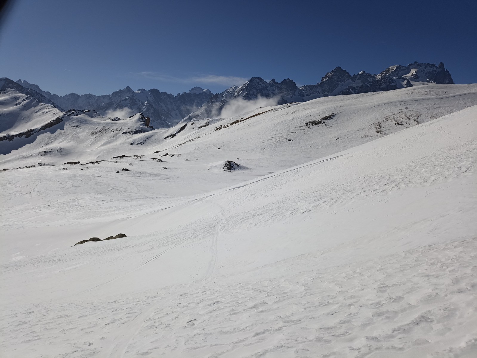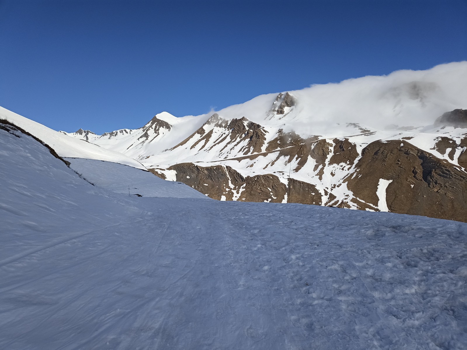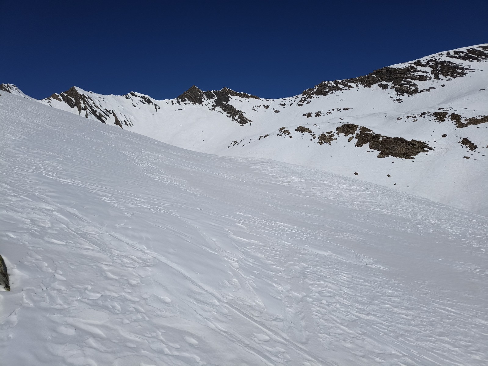 L'accès au col ce fait pour ma part en crampons alpi. La neige est béton. La descente de la parties la plus exposée ce ferra en crampons aussi. Jour blanc pour toute la descente. Aucun plaisir. Je reviendrais ;-)
