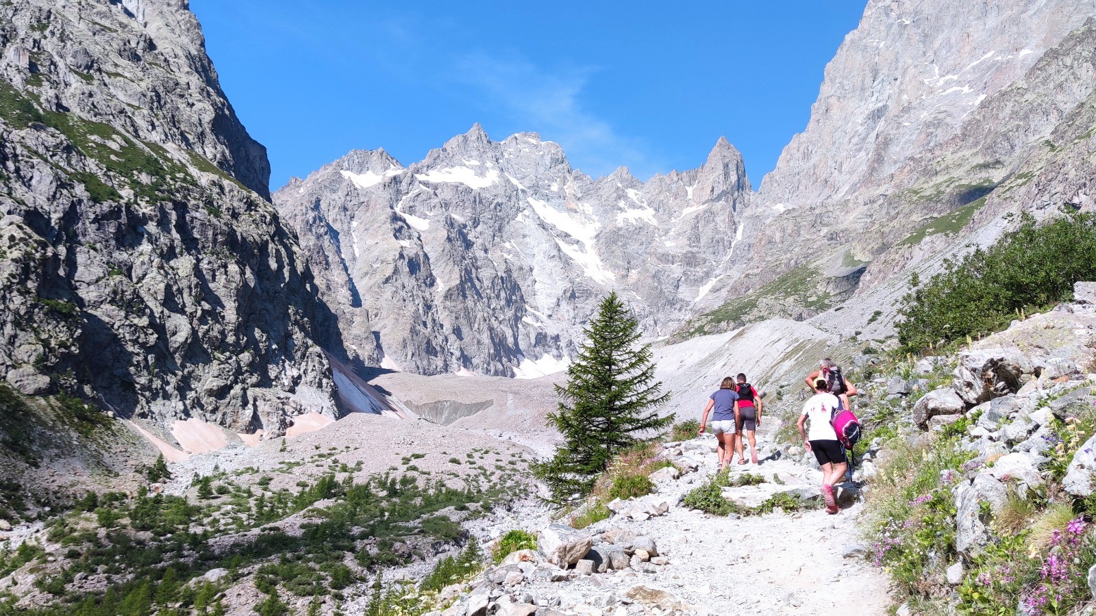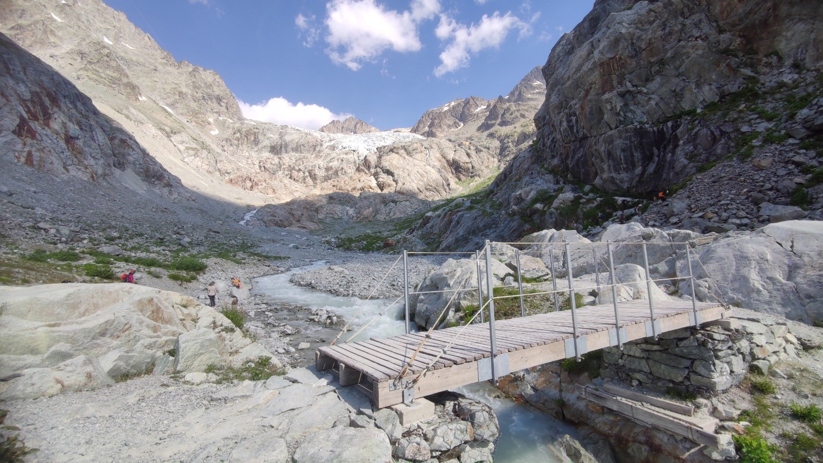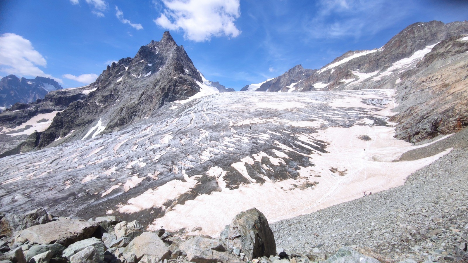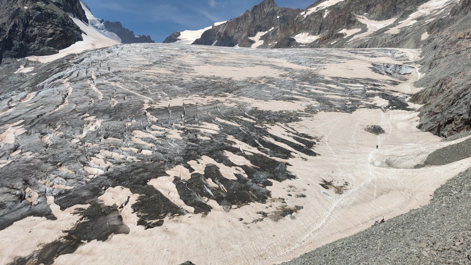 Beaucoup de monde en ce jour de juillet ensoleillé. C'est une véritable procession jusqu'au refuge où randonneurs côtoient alpinistes, promeneurs du dimanche etc... après le refuge on retrouve heureusement le calme.