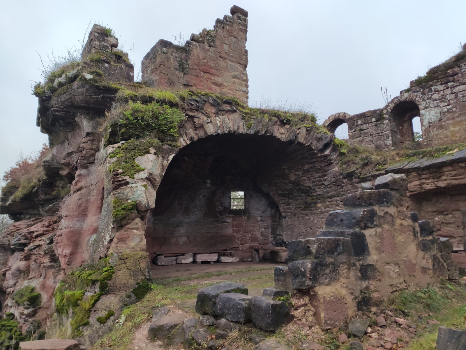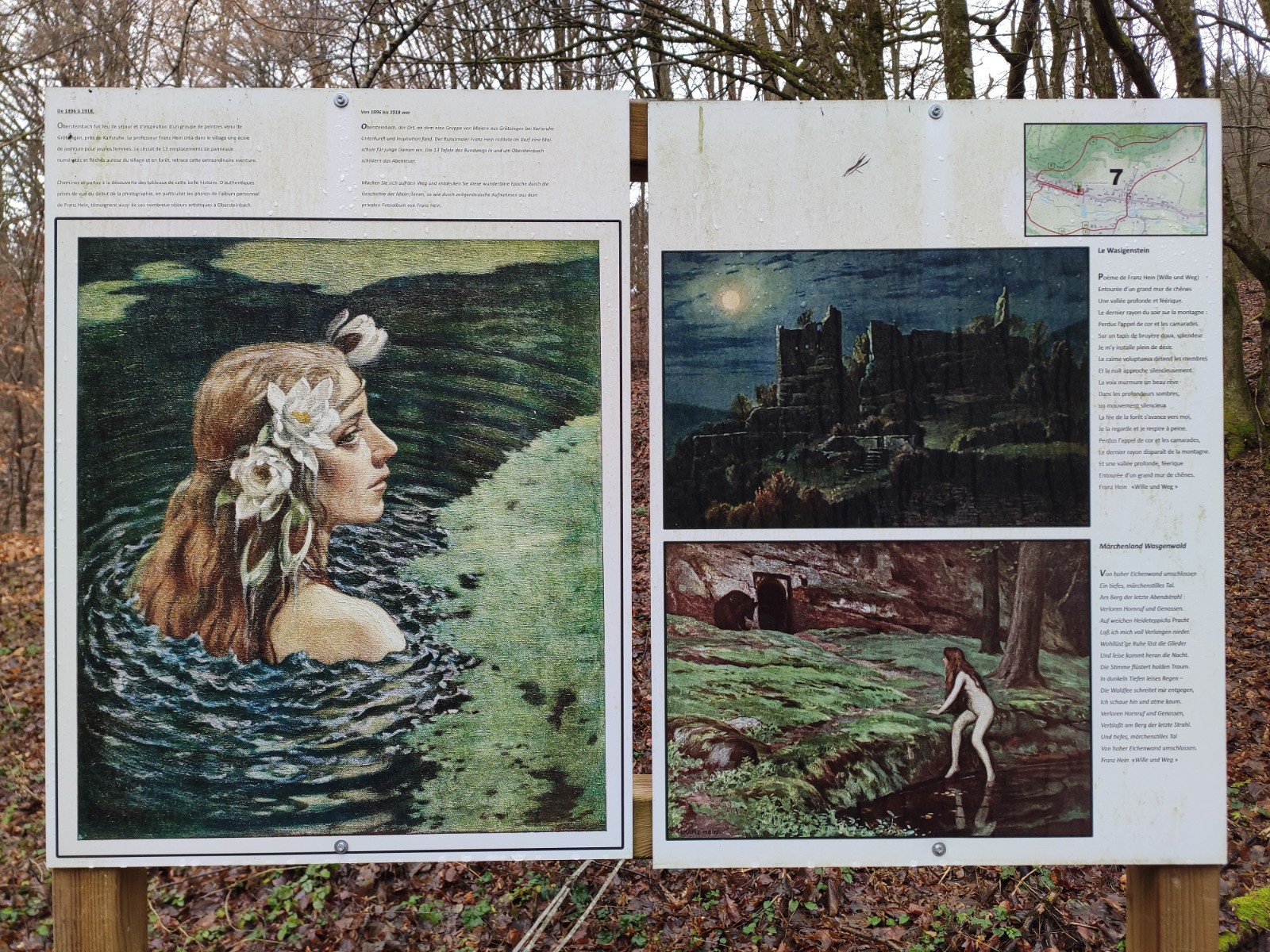 Obersteinbach - [GR532] - Niedersteinbach - RF des Chênes Pédonculés - [GR531] - Château du Froensbourg - [GR53] - Col de Hichtenbach (abri) - [GR53] - Rocher des Tziganes - [GR53] - Château du Wasigenstein - [GR53] - Wolfsfels - Château du Petit Arnsbourg - Obersteinbach - [GR532] - Château de Lutzelhardt - [Chemin des châteaux-forts d'Alsace] - Château de Schoeneck - Château du Wineck - Col du Wineck - Col du Langthal - Obersteinbach