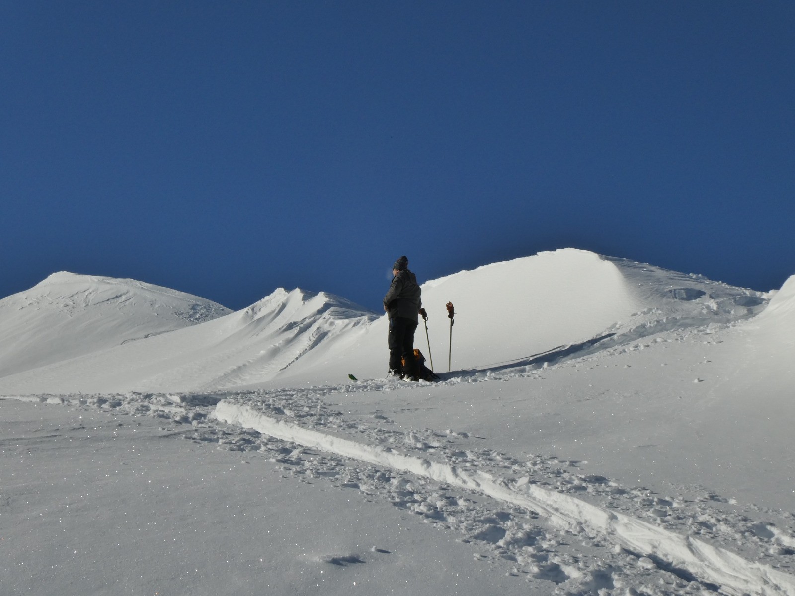 Horaires : Bah, faut vraiment ? Bon départ 9h, sommet 13h30 (on est parti les premiers, rentré les derniers, on avait la montagne pour nous tout seul à la descente). On a croisé 7 personnes, merci à eux pour la trace, oui GROOOOS merci !