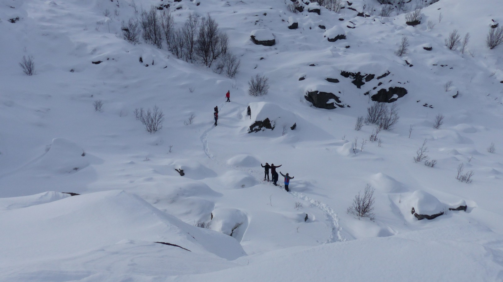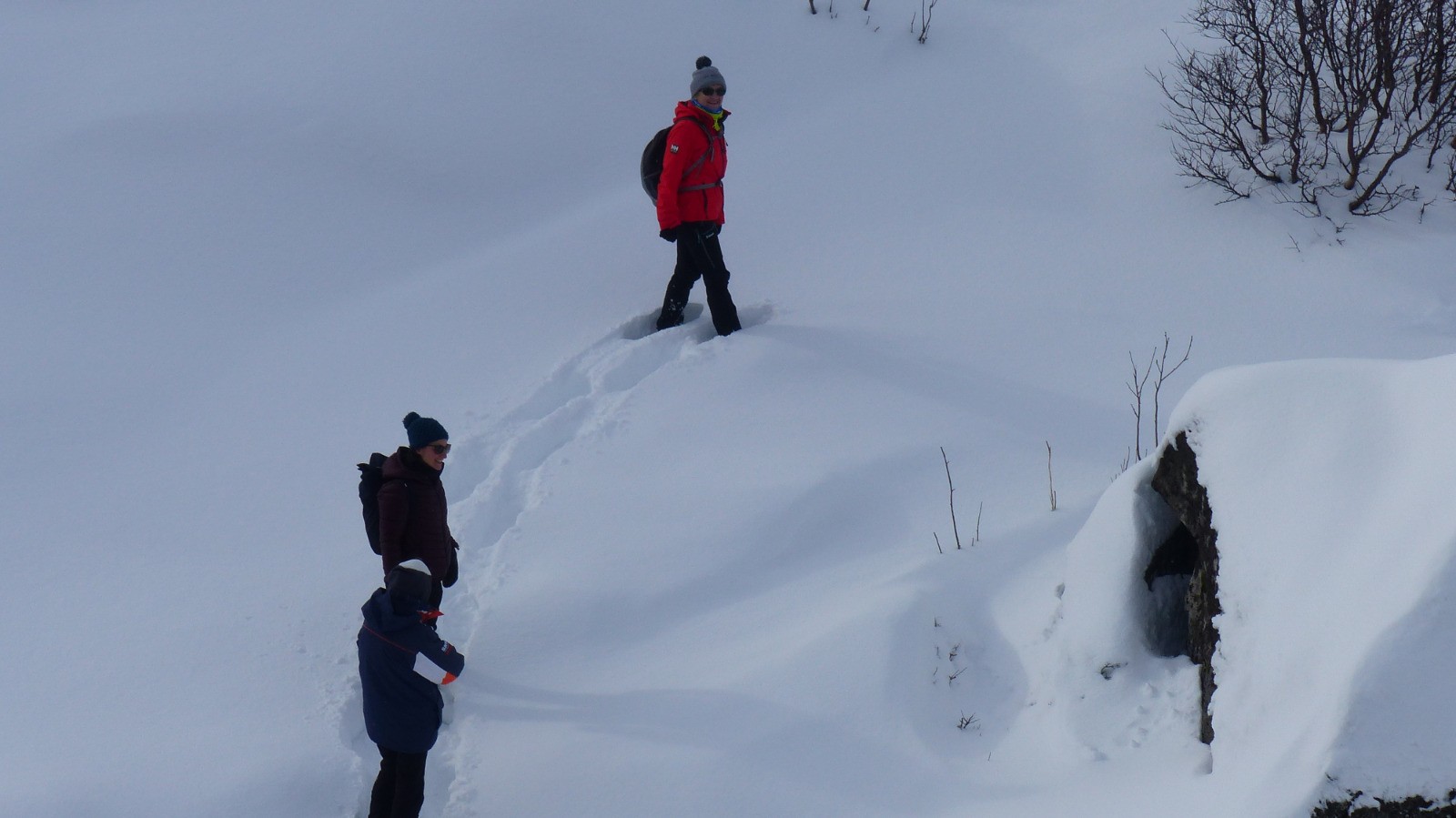 Après avoir accompagné mes collègues un certain temps, je les ai abandonnés pour me faire mon petit sommet puis tenter de rejoindre la pointe. Les conditions météo m'ont fait un peu peur et suis rentré sans voir la pointe. Ce qui est particulier, c'est que crapahuter sur un tapis de neige nous supprime toute possibilité de 'suivre un chemin' ... Je n'avais pas accès aux plans d'IGNRando (valable pour la France seulement) et étais donc 'contraint' de suivre les traces de mes compagnons de marche ... expérience déroutante en ce qui me concerne.