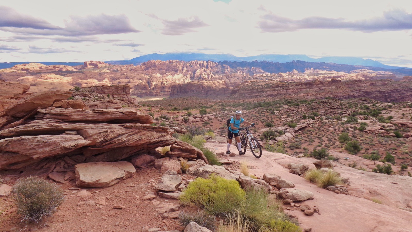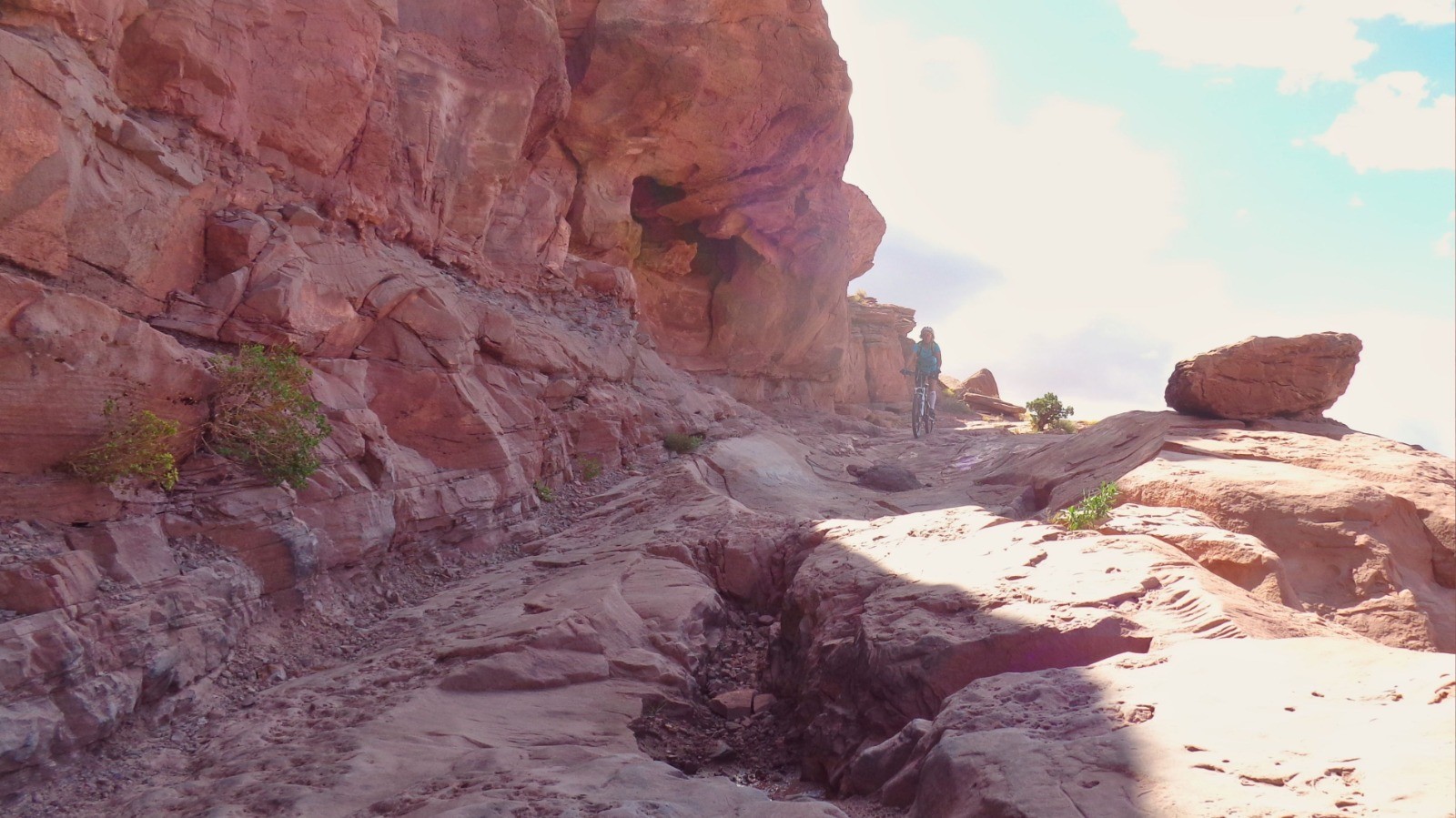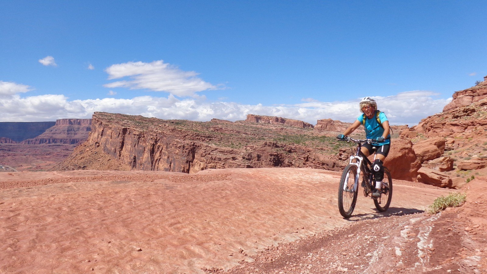 Une des attractions de Moab, dénivelés abruptes, de l’expo par endroits, de belles dalles, des superbes vues et des montées avec des marches hautes bien éprouvantes, séance poussette avec nos vélos vintages (triples plateaux, 26 pouces)…