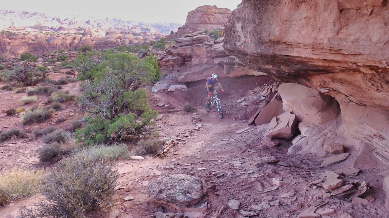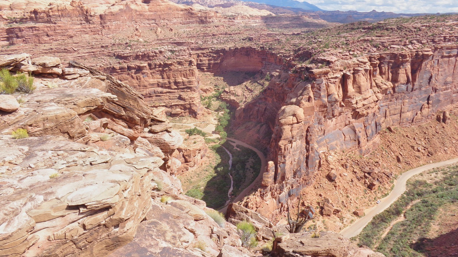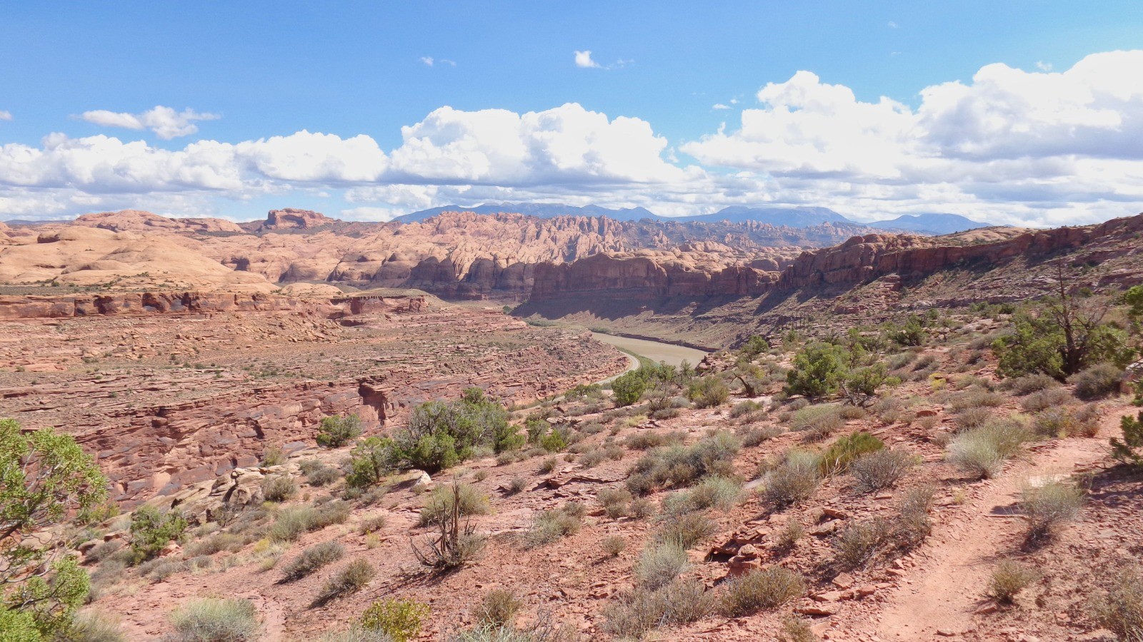 Une des attractions de Moab, dénivelés abruptes, de l’expo par endroits, de belles dalles, des superbes vues et des montées avec des marches hautes bien éprouvantes, séance poussette avec nos vélos vintages (triples plateaux, 26 pouces)…