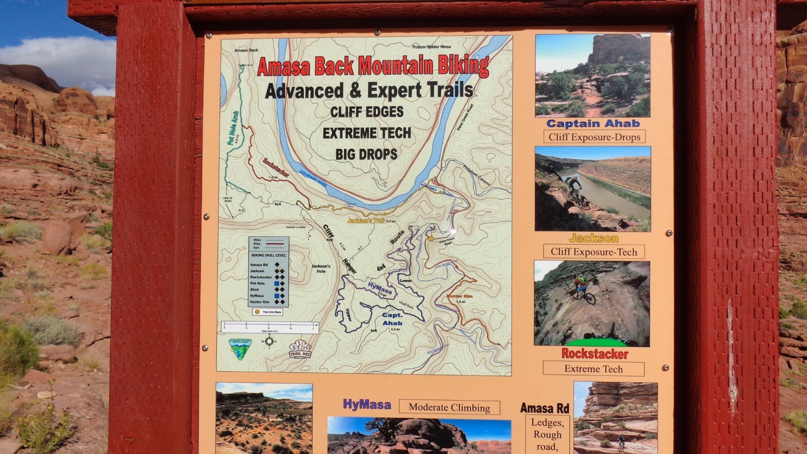Au programme : aller et retour par Cliff Hanger Trail, Hy Maza, Amaza Back, Pothole Arch, Rock Staker, Amaza Back en retour pour aller chercher l’excellent Captain Ahab difficile en partie haute puis vertigineux sur la fin... Les photos. La vidéo de la sortie