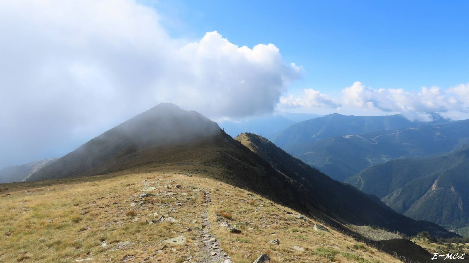 Du Pic de Percanela, revenir au col et poursuivre sur crête, traverser le Pic del Clot de Cavall, après une courte descente, continuer jusqu’au point coté 2602 m et obliquer à gauche. Suivre le balisage blanc rouge puis le balisage jaune rouge pour franchir un ressaut rocheux facile puis un bout de crête tranquille pour finir de monter au Pic de la Burna, au sommet duquel il y a un équipement pour le déclenchement d’avalanches. Continuer sur la crête toujours facile jusqu’au Pic de les Fonts.