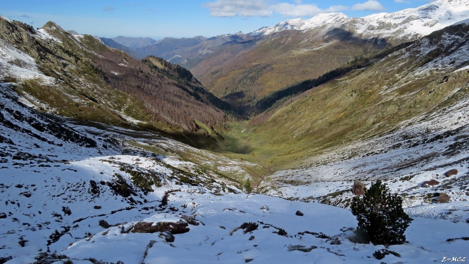 Descendre au col par des sentes de troupeaux sur le versant sud. Du col, descendre au Nord dans le vallon (sentier sur le flanc gauche), pour rejoindre la cabane et la piste.