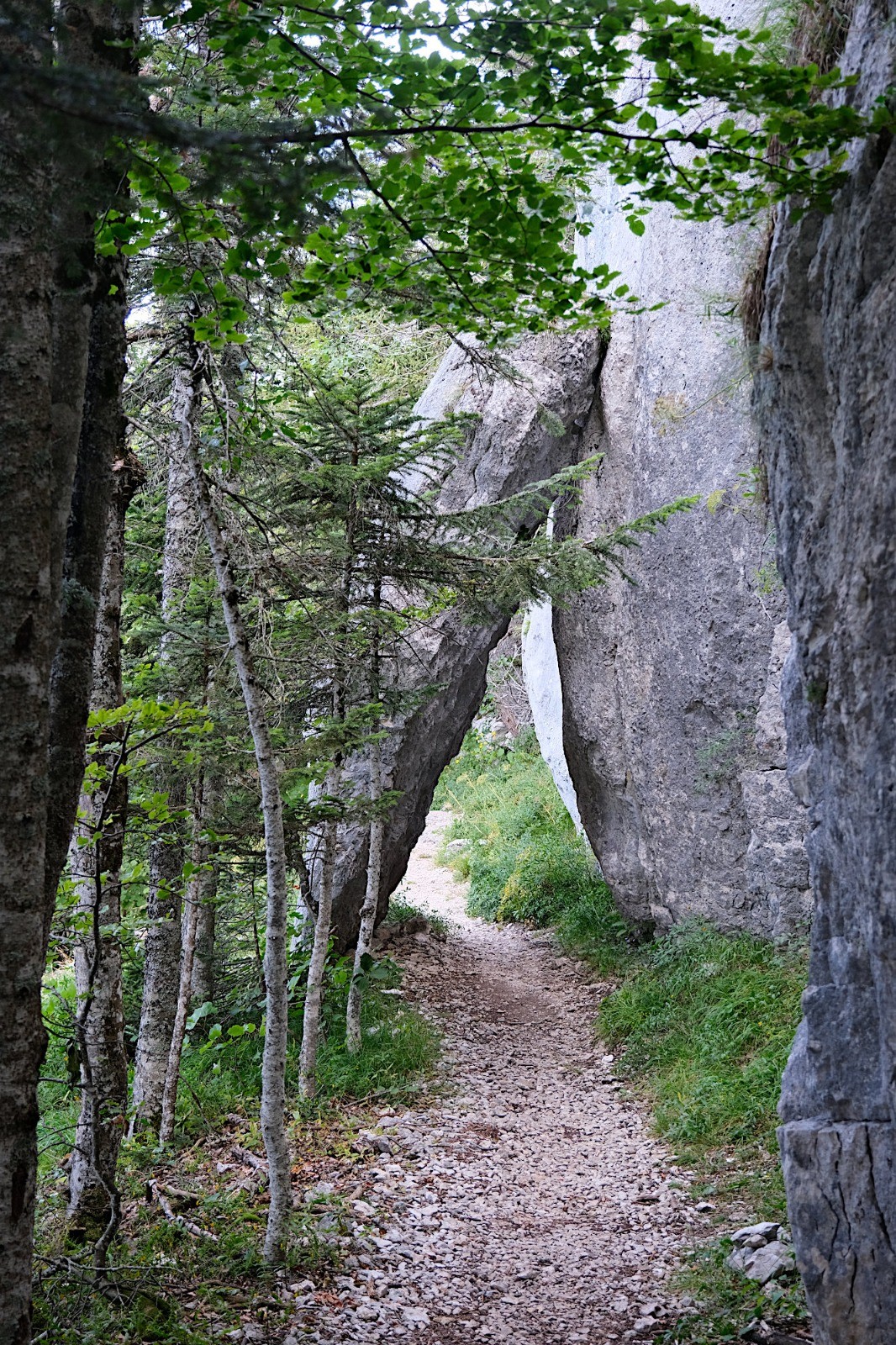 Boucle au départ de la route D221 reliant St. Martin en Vercors à Herbouilly. Montée par le chemin de la Pia et la vire de St. Martin. Puis circuit dans la forêt avec visite de la grotte de la Cheminée, de l'arche de la Loubière, du gouffre et et de la glacière de Corrençon et de la Barre aux Chèvres.