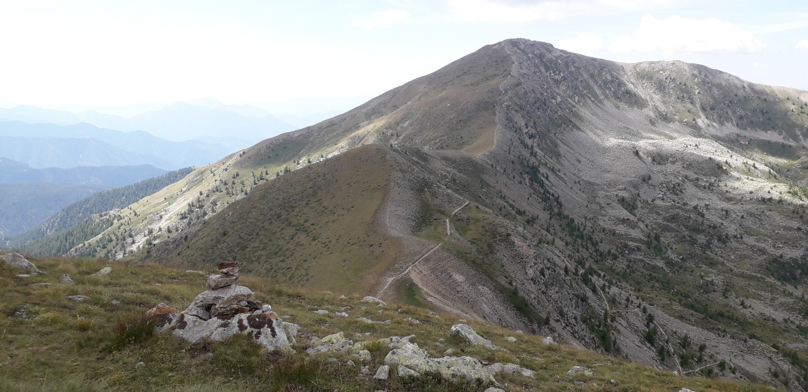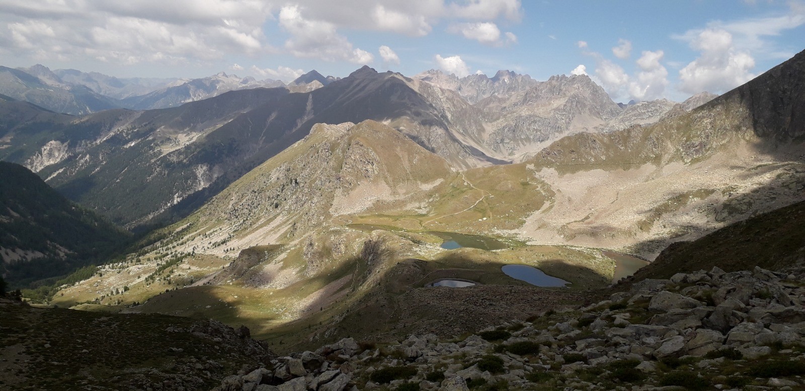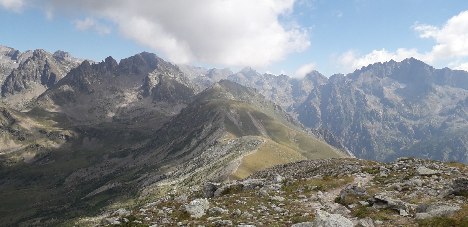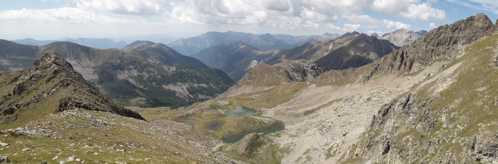 Circuit en boucle 15 Km lacs de Prals depuis sanctuaire Madone de Fenestre. Itinéraire par cimes de la Valette de Prals (2496 m) et de Paranova (2556 m) avant retour par les lacs. Parcours en zone coeur du Parc National du Mercantour.