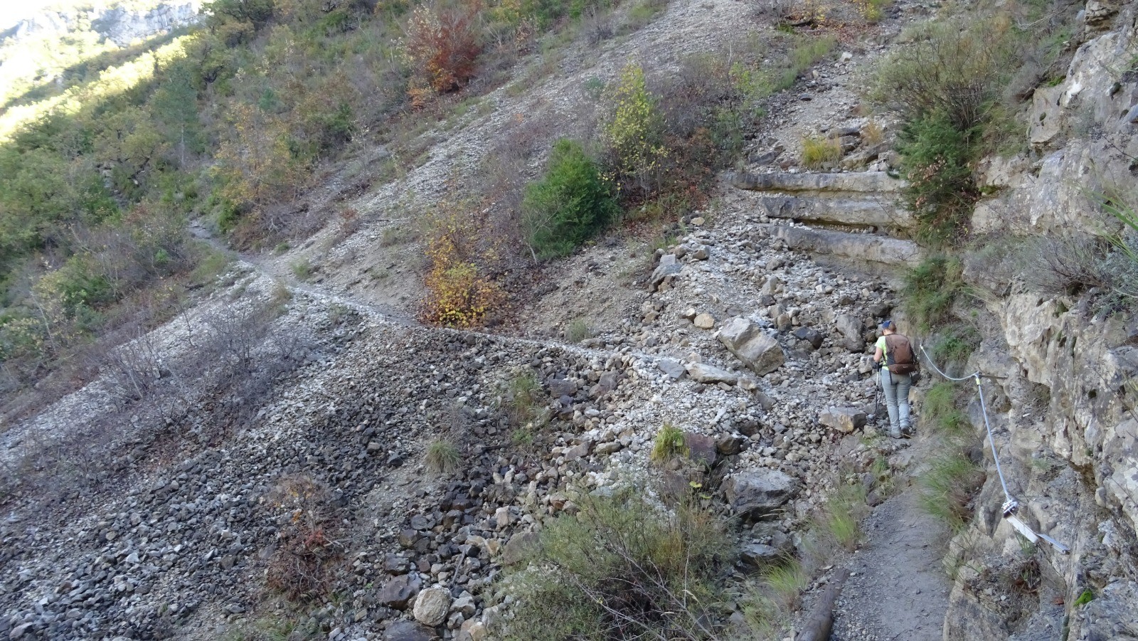 Une grande classique mais qui demande un bon effort. Le kilométrage est certes peu important mais la difficulté vient surtout d'un dénivelé en montagne russe avec des pentes très importantes par endroit. Attention si vous craignez le vertige également. Début novembre nous avons profité des belles couleurs d'automne et d'une magnifique lumière, mais le grand tau d'humidité a rendu de nombreux passages très délicats. Il a fallu pratiquer avec une grande attention le planté de bâton.