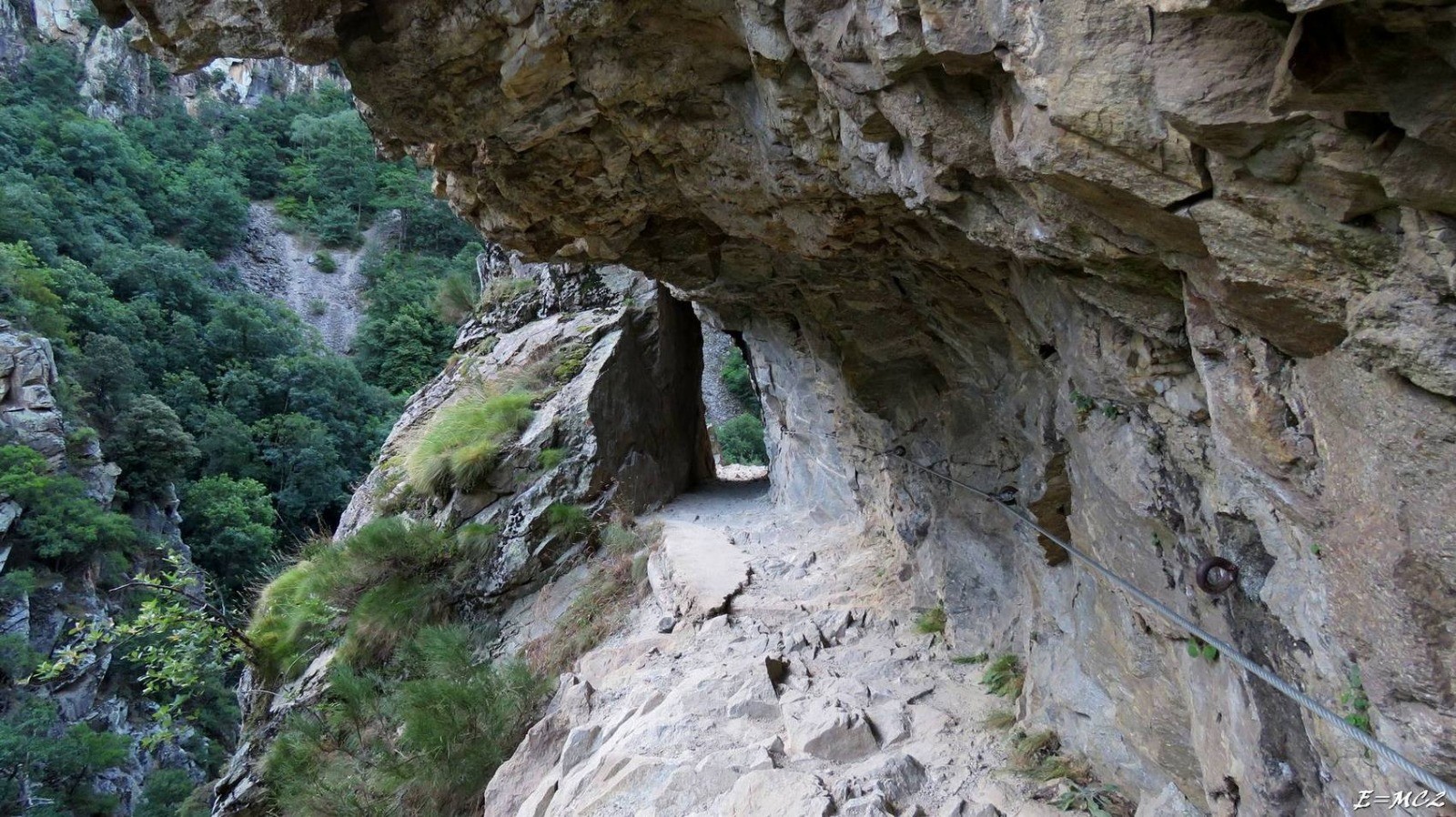 Le cheminement se poursuit par une série de passerelles et de ponts de singes permettant de progresser dans le fond des gorges. Une dernière traversée vers la rive gauche du torrent termine cette zone. Le parcours se poursuit en sous-bois jusqu'à la jonction avec l'itinéraire passant par Campilles. Il reste encore une quarantaine de minutes pour arriver au refuge du Ras de la Carança.