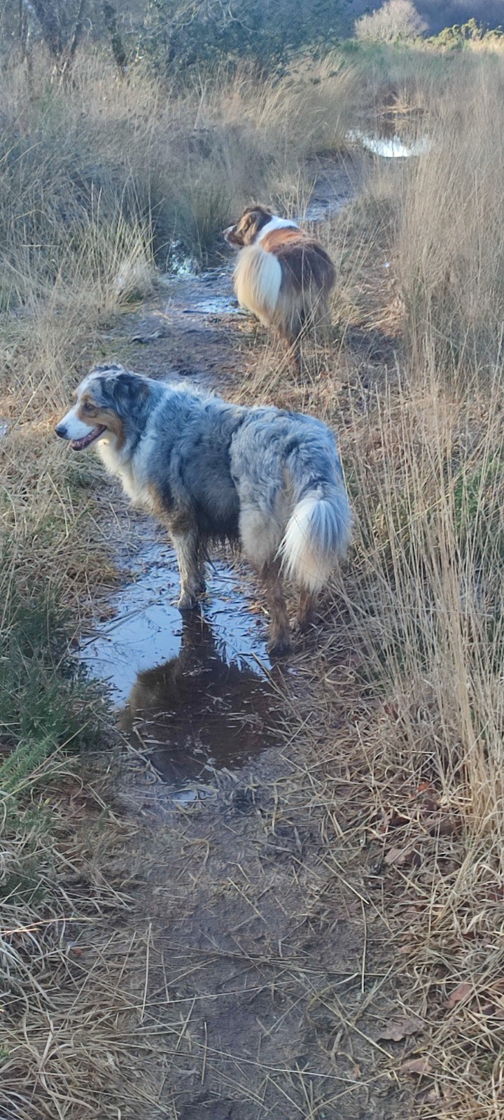 courses après un chevreuil dans le camping et Maguy qui a voulu passer par le cattle grid à l'Anse du Brick 😨 (trop impatiente d'aller devant !). Bobo patte arrière mais elle re-trottinait 2mn après 😄
