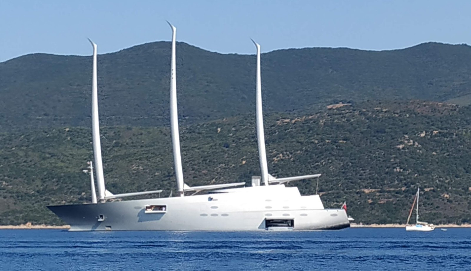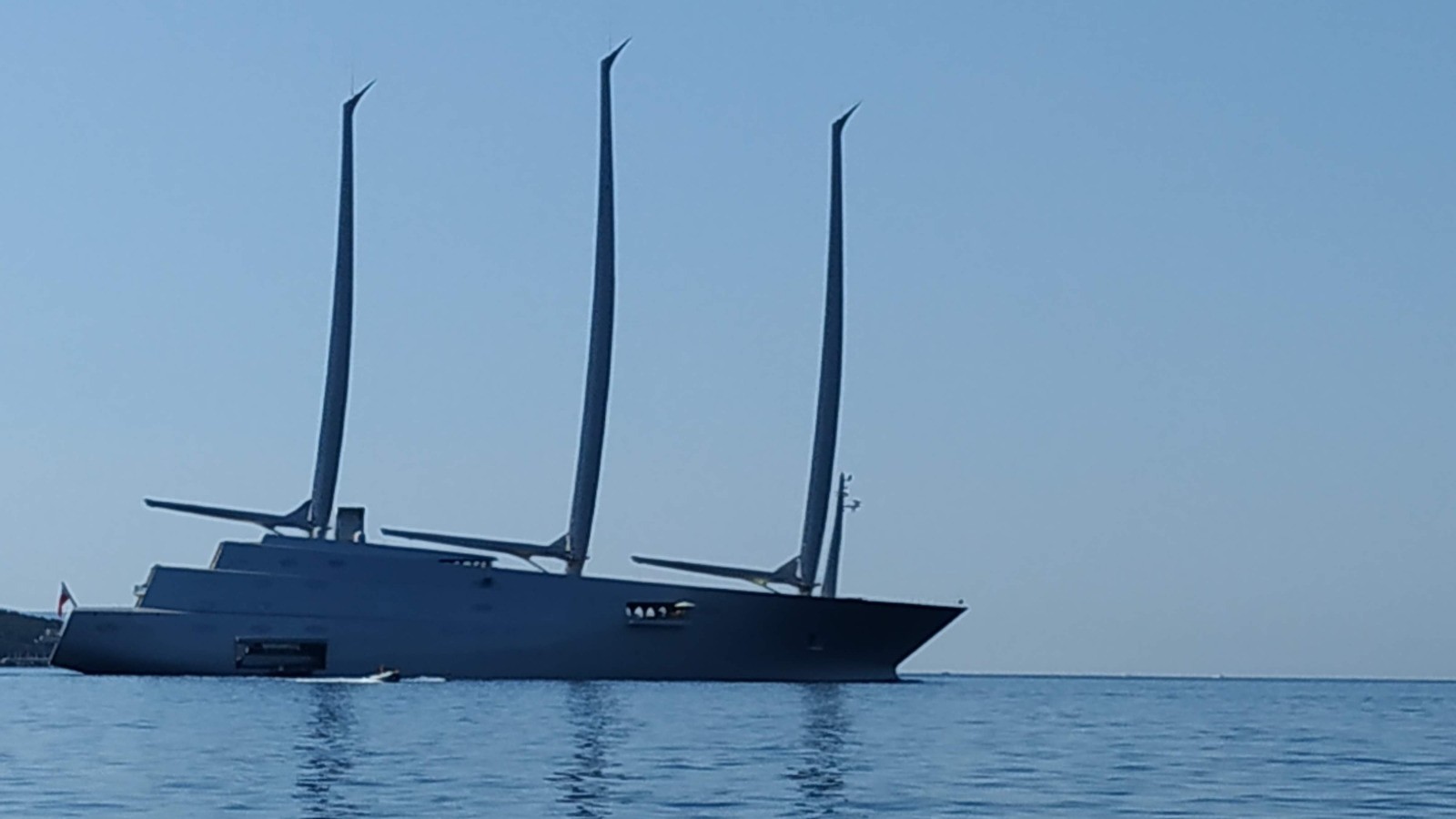 Au petit matin, un énorme voilier, le plus grand du monde, lira-t-on sur internet (le plus laid, diront certains), entre dans la baie. Le "Sailing Yacht A" de 143 mètres.
