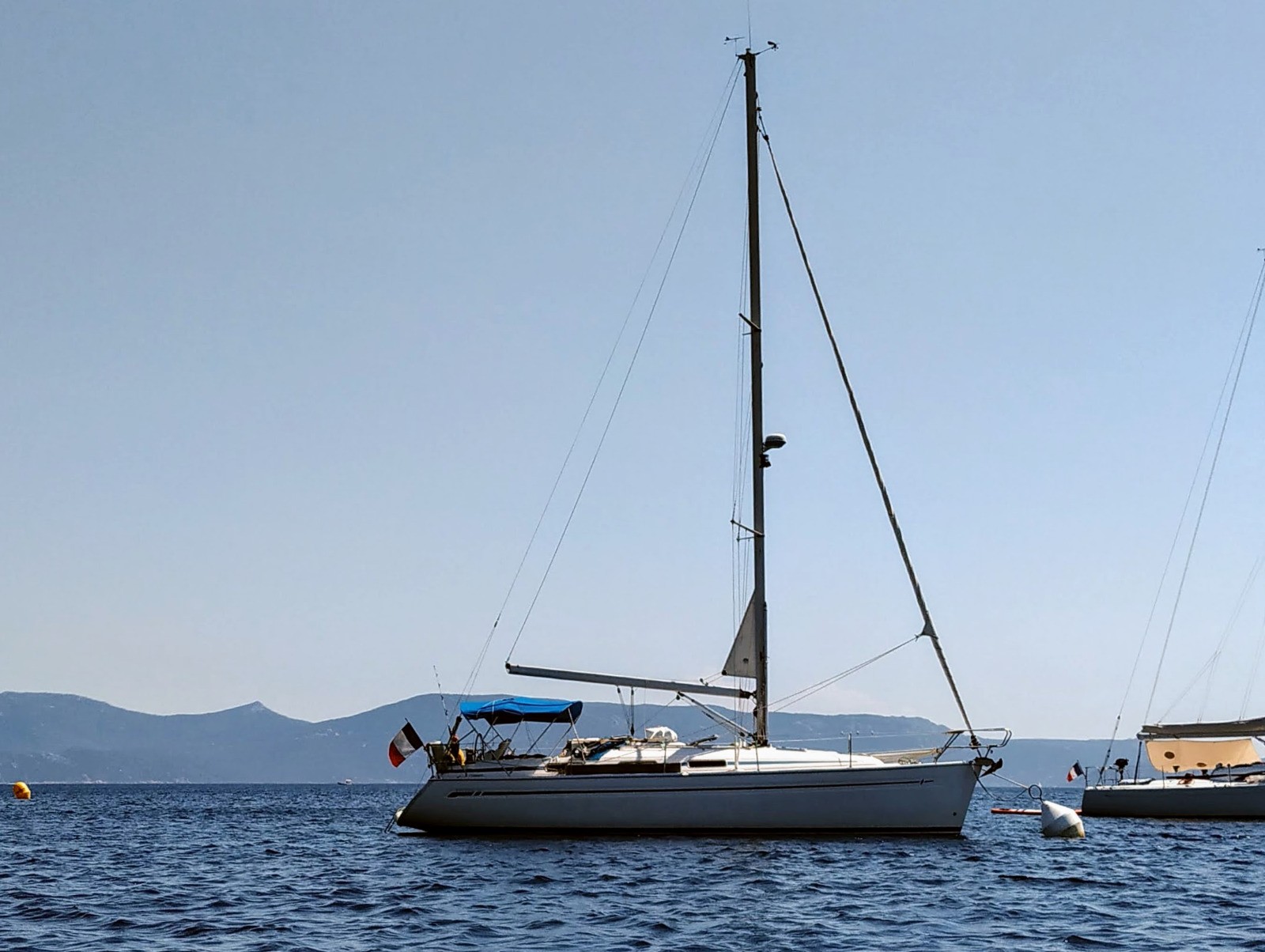 Retour vers 15 hrs sur le SCALAIRE, au fait je ne l'ai pas encore présenté; donc c'est notre bateau, un Bavaria de 34 pieds.