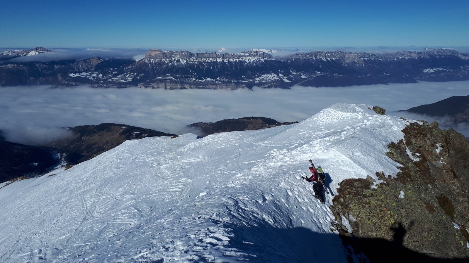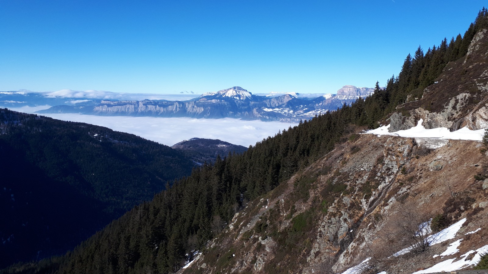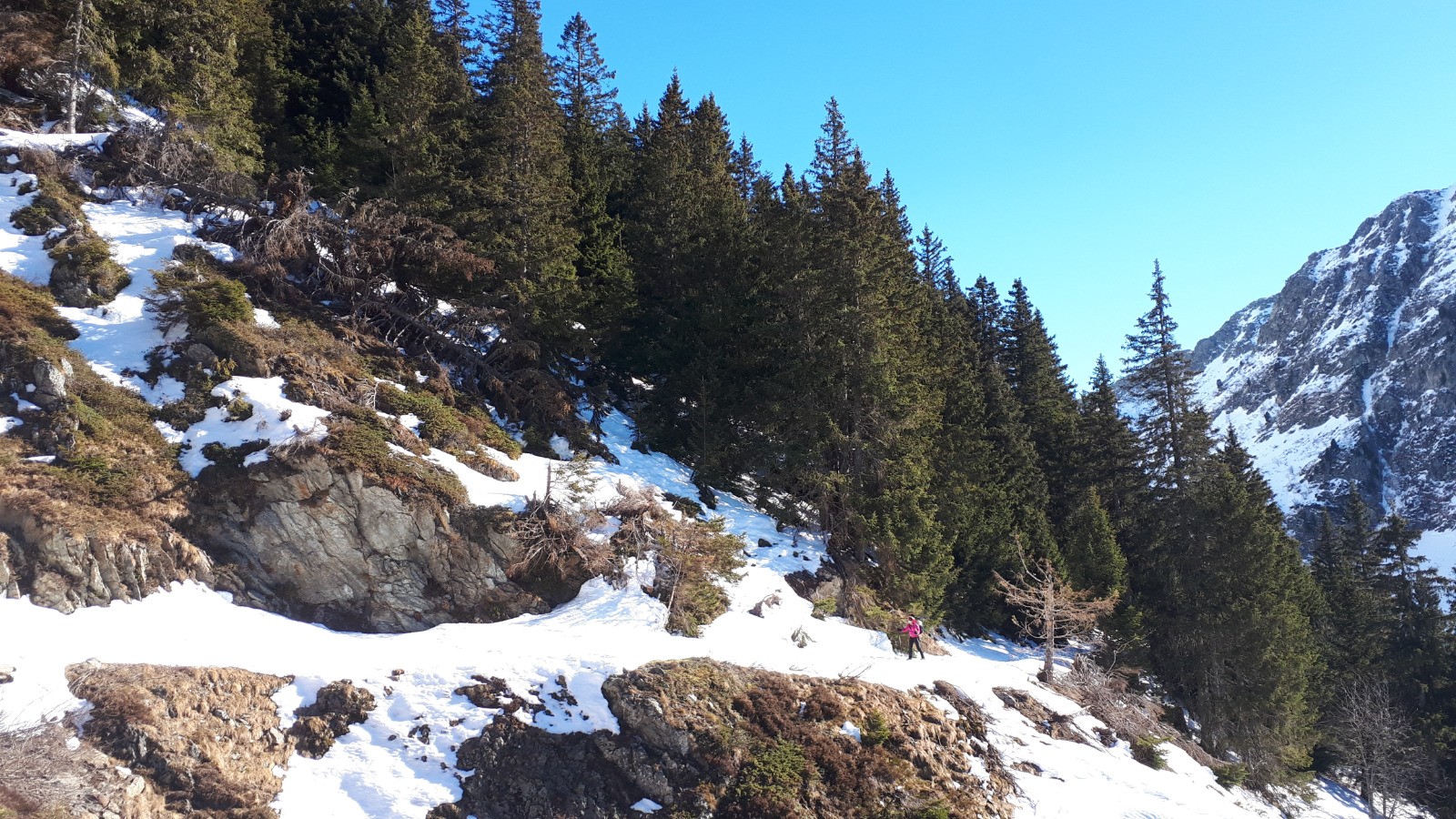 Ça faisait longtemps, en fait plutôt familier de la descente direct depuis le sommet. Un peu d'exploration au départ, un retour jamais emprunté par myself, ça roule. Neige en sud médiocre, pas encore assez transfo, des (mini) pénitents sur le haut, bof. Sur la fin on aurait pu redescendre directement à la voiture, la forêt est accueillante, mais la neige médiocre. Donc petite remontée pour profiter de la piste, jusqu'au parking par une petite bande de neige sur le coté, top!