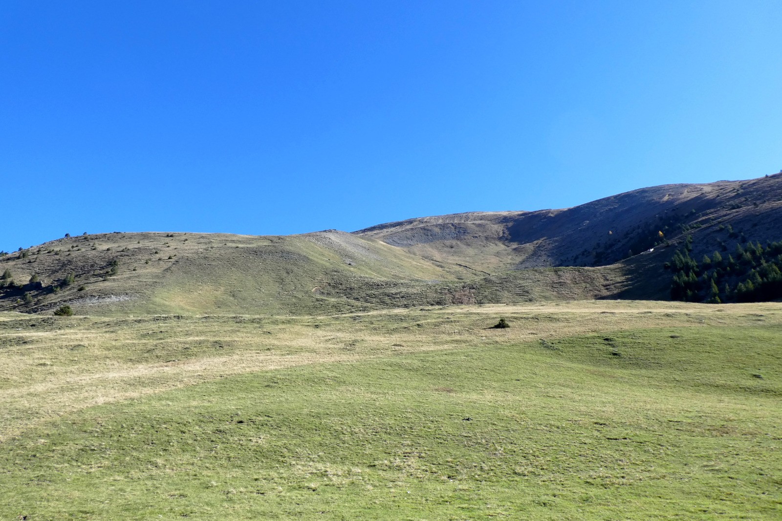 Par les basses et hautes Selles, les Prés de l'Aiguille, vastes prairies d'alpage situées sous le sommet des Clottous.