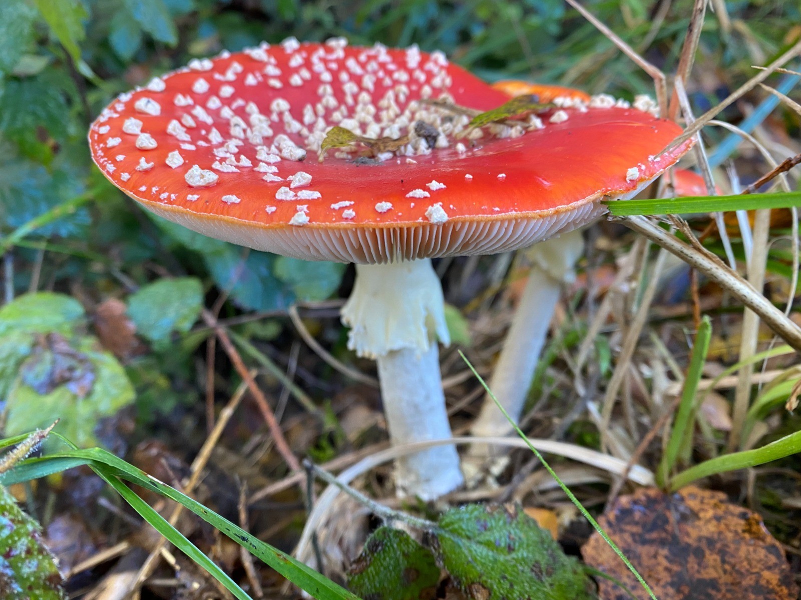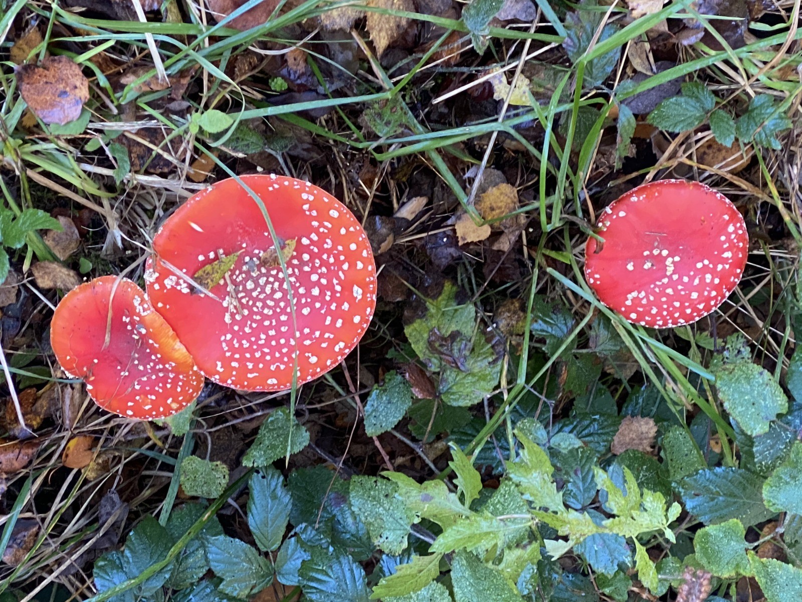 De nombreuses "amanites tue-mouches" ( photos 2 à 4 ) ou "fausse oronge" tapissent le sol.