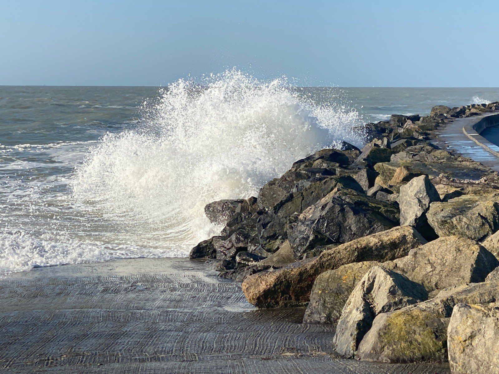 De grandes vagues ( marée de 94 ) viennent s'écraser sur la digue ( photo no 19 )