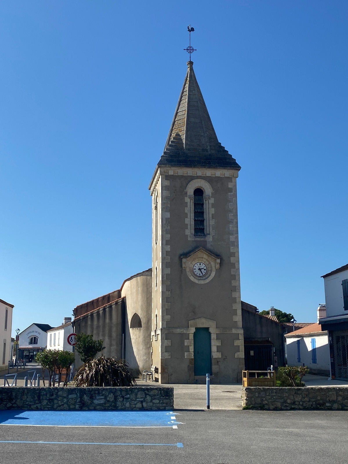 Deux kilomètres d'asphalte vont suivre dans les petites rues de L'Epine avec ses maisons blanches aux volets bleus.