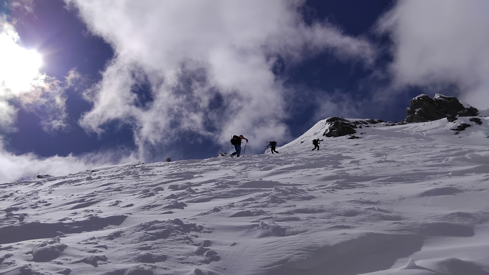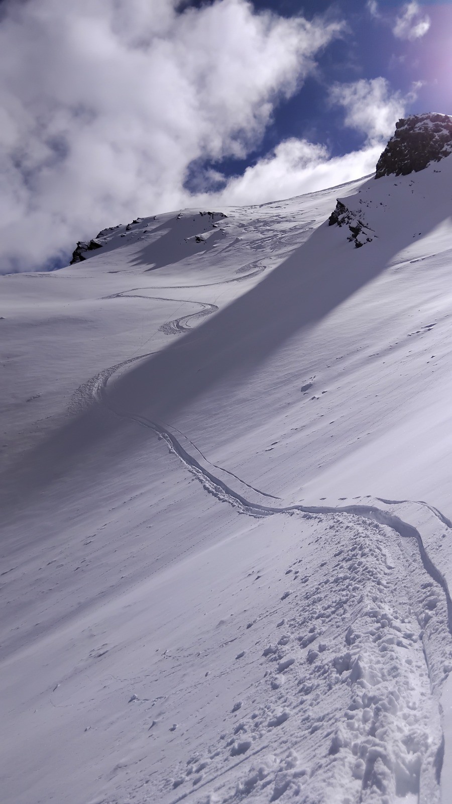 Jolie parcours avec de nombreux points de vues et goulet sympas surtout avec 10cm de poudre tombée dans la nuit.