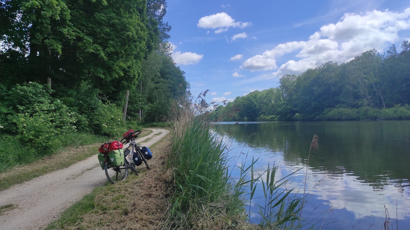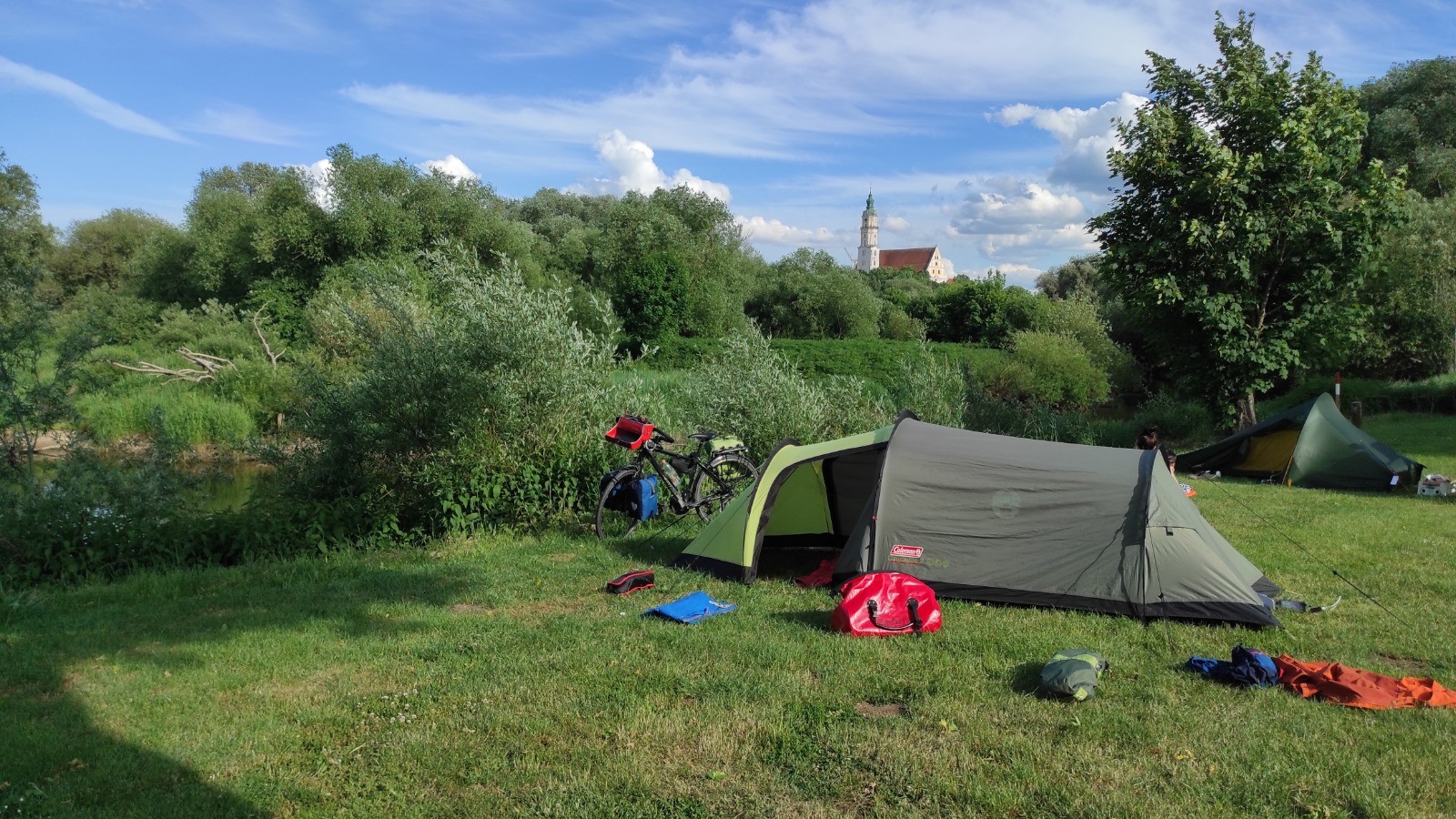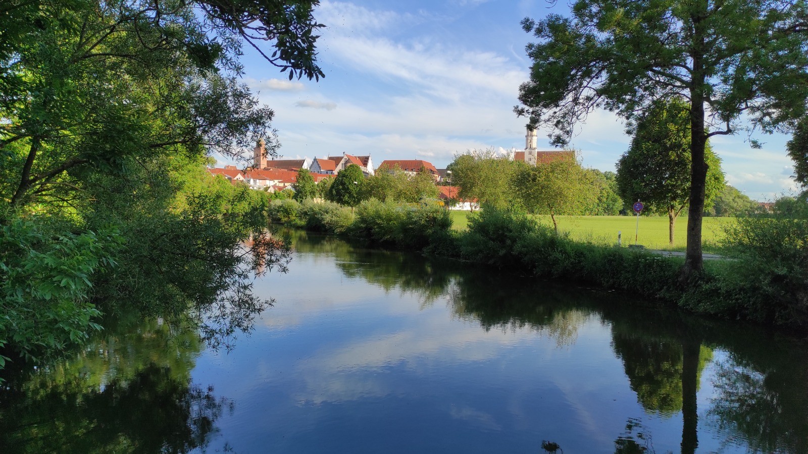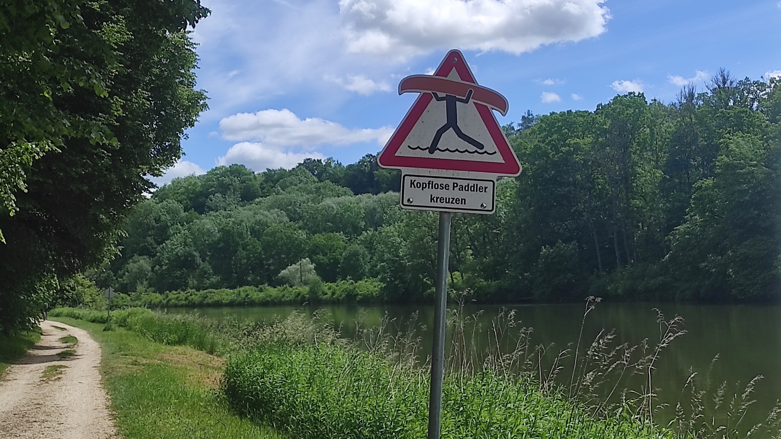 Ça continue agréable avec qq, peu, de villages. Je décide de passer le premier camping à Dillingen, car il est tôt. Mais 54 km quand même. Il en reste 40 pour le suivant. Ben, je tente car j'ai vu qu'il y a aussi un camping kanu- club. Le reste du parcours passe dans la campagne. Beaucoup de cultures, épinards, orge(je crois) , de tracteurs.