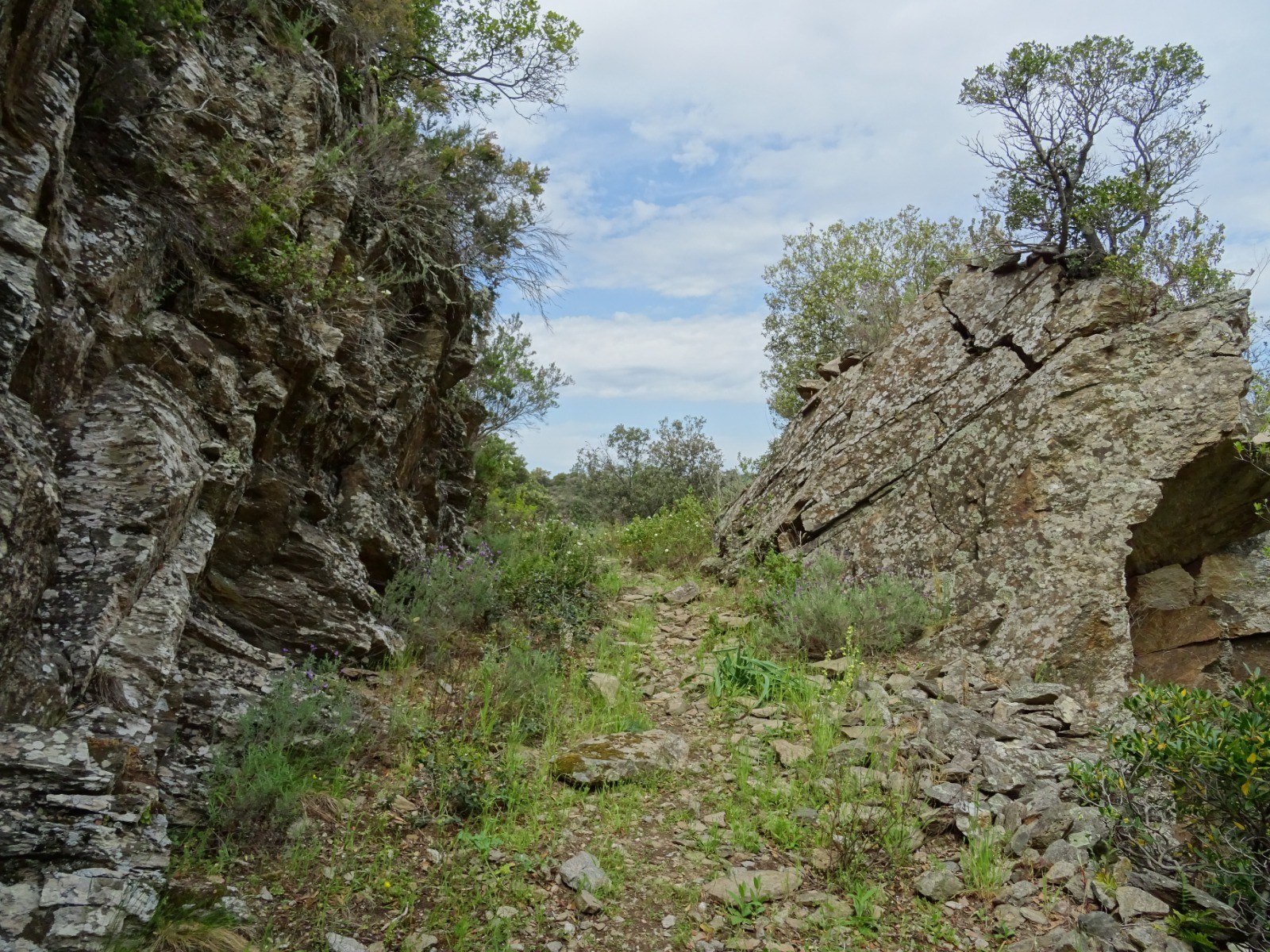 Le retour se fait sur l'ancien chemin muletier. On pourra y voir les marques laissées par les roues dans la pierre.