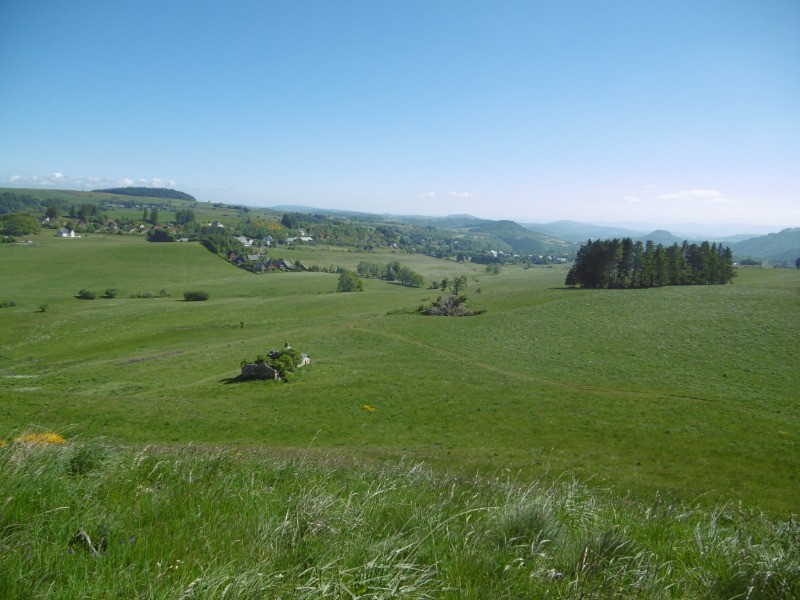 Première étape du Tour du Volcan Cantalien. De l'arrêt du bus venant de Clermont, remonter vers le centre ville, et emprunter le GR 30 à gauche de la rte.