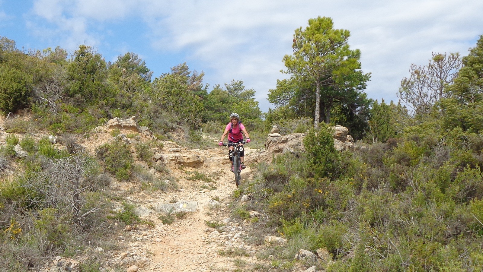 Encore une belle sortie sous le soleil. Sentiers roulés : Entre Pinos Por El Alto Del Pino > Alto Pino > Fuente De La Sierra > Fuente Del Pino > Enlace Trinidad > Cruz De La Trinidad > Llegada Abizanda.