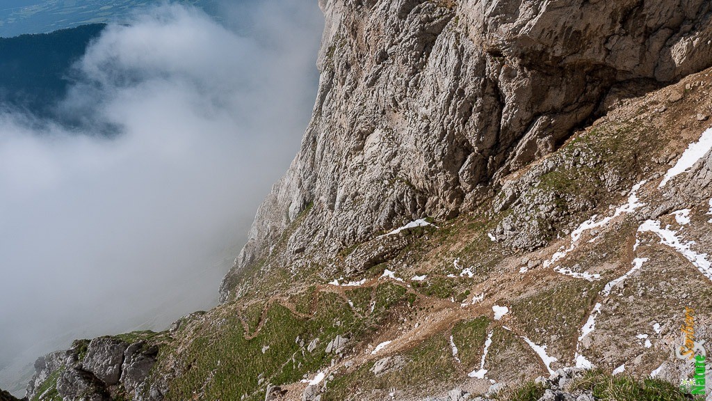 Petite Soeur Sophie est rapidement atteint par son arête aérienne. Traversant, le flanc Ouest de la montagne vers le Nord, raide et entrecoupé de barres rocheuses, on retrouvera les pelouses verdoyantes du