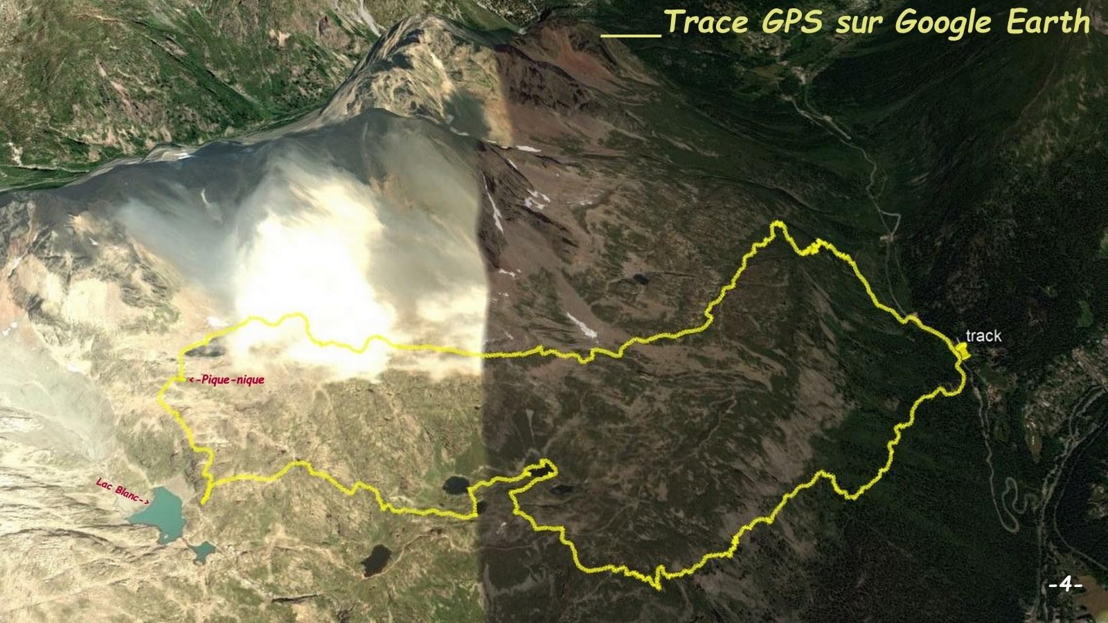 depuis le parking de Tré-le-Champ le Haut, 1422 m, le sentier escarpé de l'Aiguillette d'Argentière (GR du Tour du Mont-Blanc) jusqu'à la Tête aux Vents, 2133 m > puis hors-sentier balisé, passage au mieux par les Lacs des Chéserys > suivi de la montée directe au belvédère du Lac Blanc, 2412 m > et sa croupe nord, au mieux jusqu'à la Tête sur les Lacs > nous avons ensuite poursuivi par de grands pierriers parfois un peu pénibles pour contourner par le nord le grand et beau lac non nommé sur l'IGN > pour ensuite rejoindre au mieux d'abord une confortable croupe suivie d'une succession de vallonnements jusqu'au GRP Tour du Pays du Mont-Blanc à la cote 2065 m > suivi en direction du Col des Montets > avant lequel on trouve un bon sentier pour revenir sur le parking de départ.