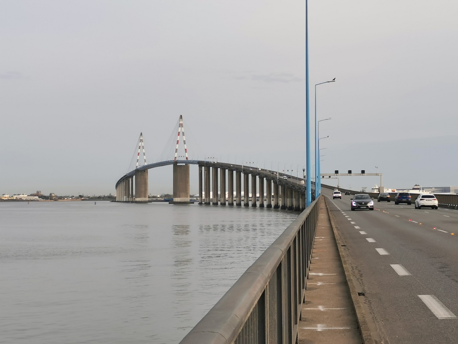 Le pont de Saint-Nazaire est autorisé aux piétons sauf en cas d'orage. Il est impressionnant et le trottoir n'est pas large, c'est mieux sans bâton !.