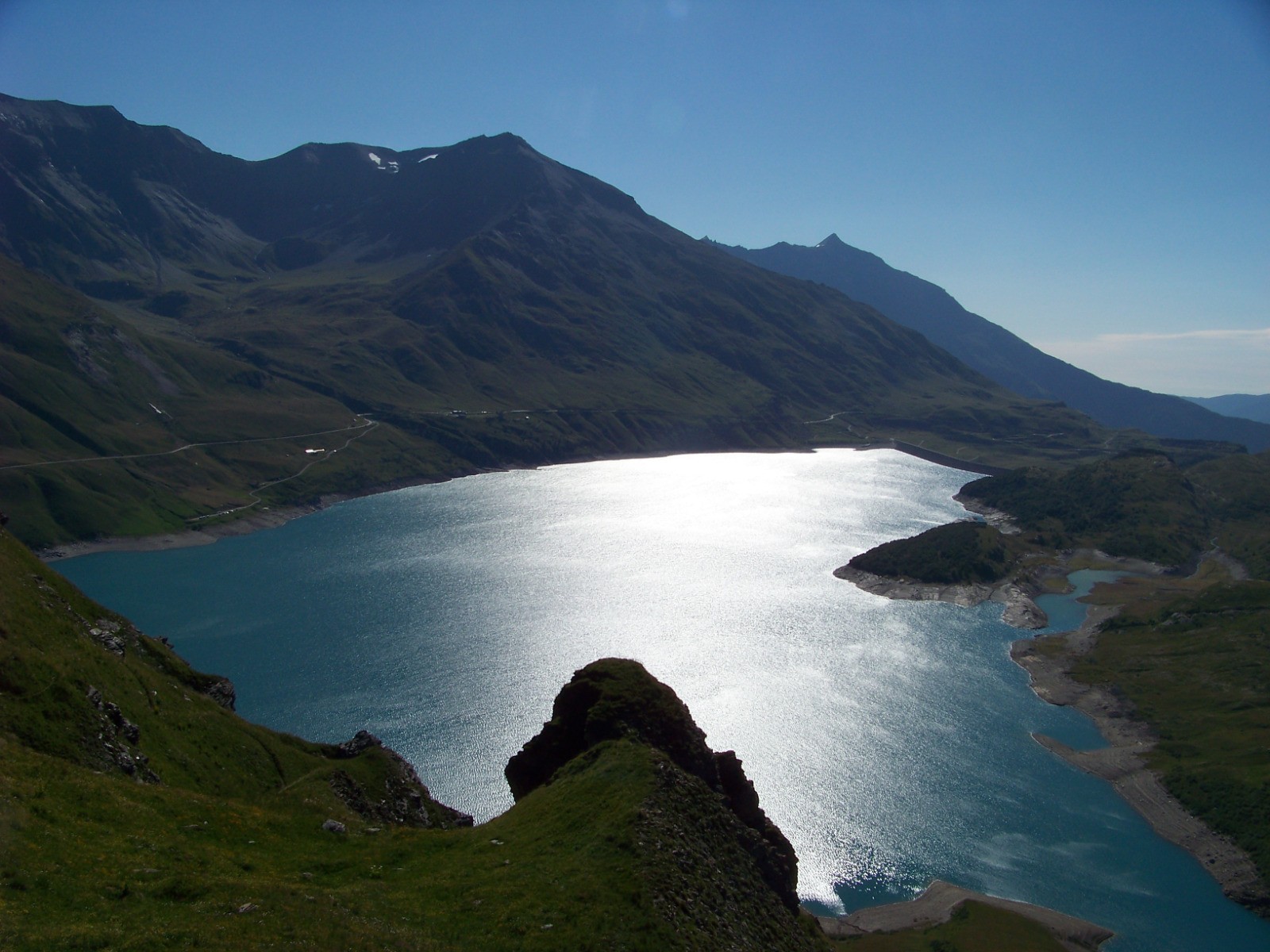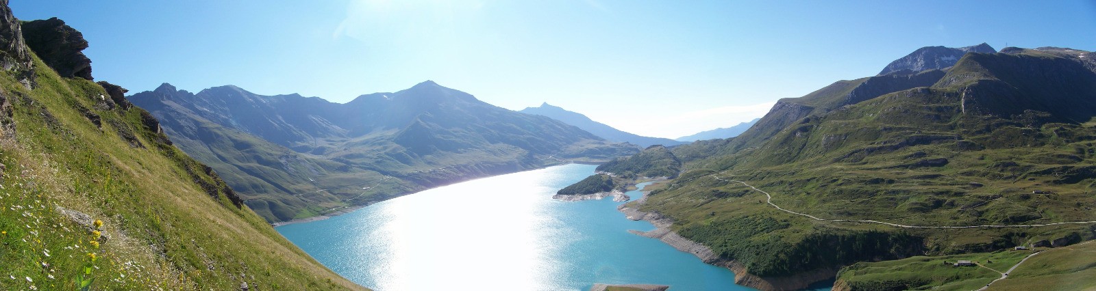 Très belle traversée alpine bien tracée et balisée au dessus des splendides a-pics dominant le grand lac aux eaux turquoises du Mont Cenis.